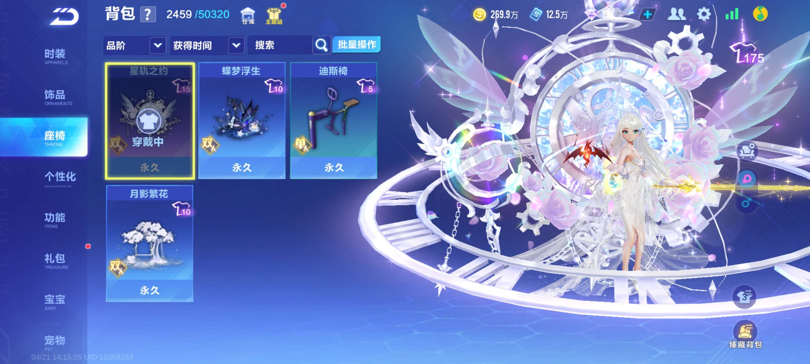 V9美女道具号,一个道具骑宠,冰晶魅灵骑宠,废话不多说了,自己看图吧。