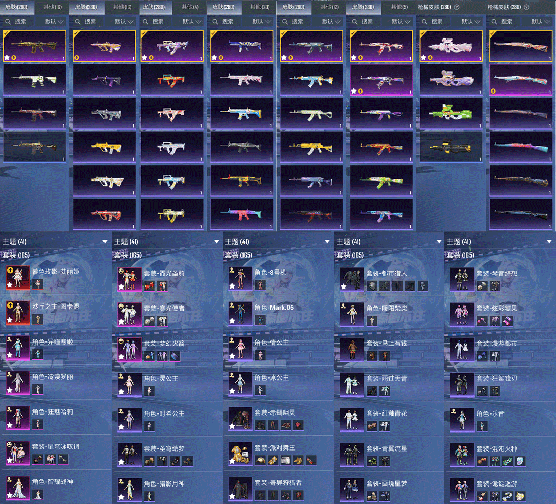 粉装8:梦幻火箭,,霞光圣骑,,星穹咏叹调,,异瞳寒姬,,寒光使者,智耀战神,,冷漠罗丽,,狂魅哈莉,