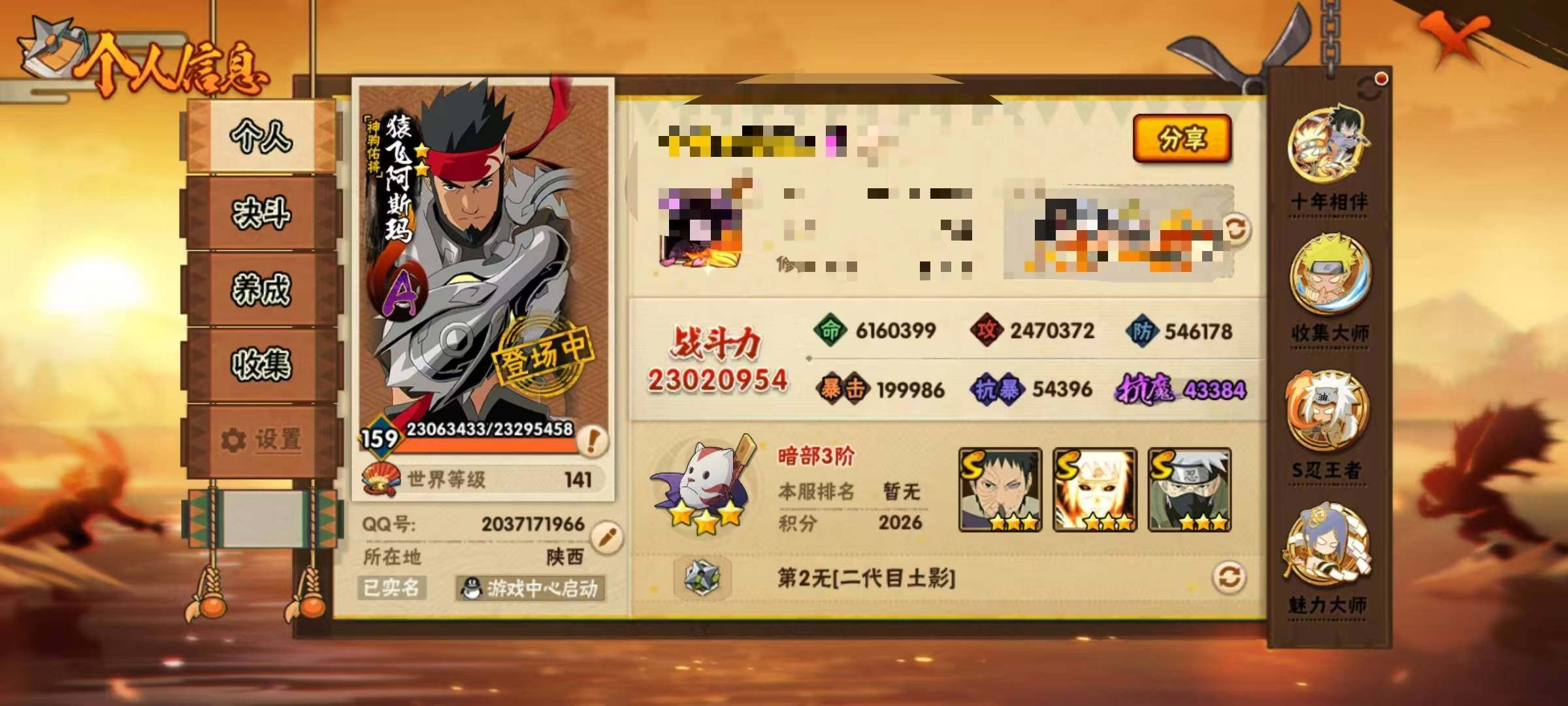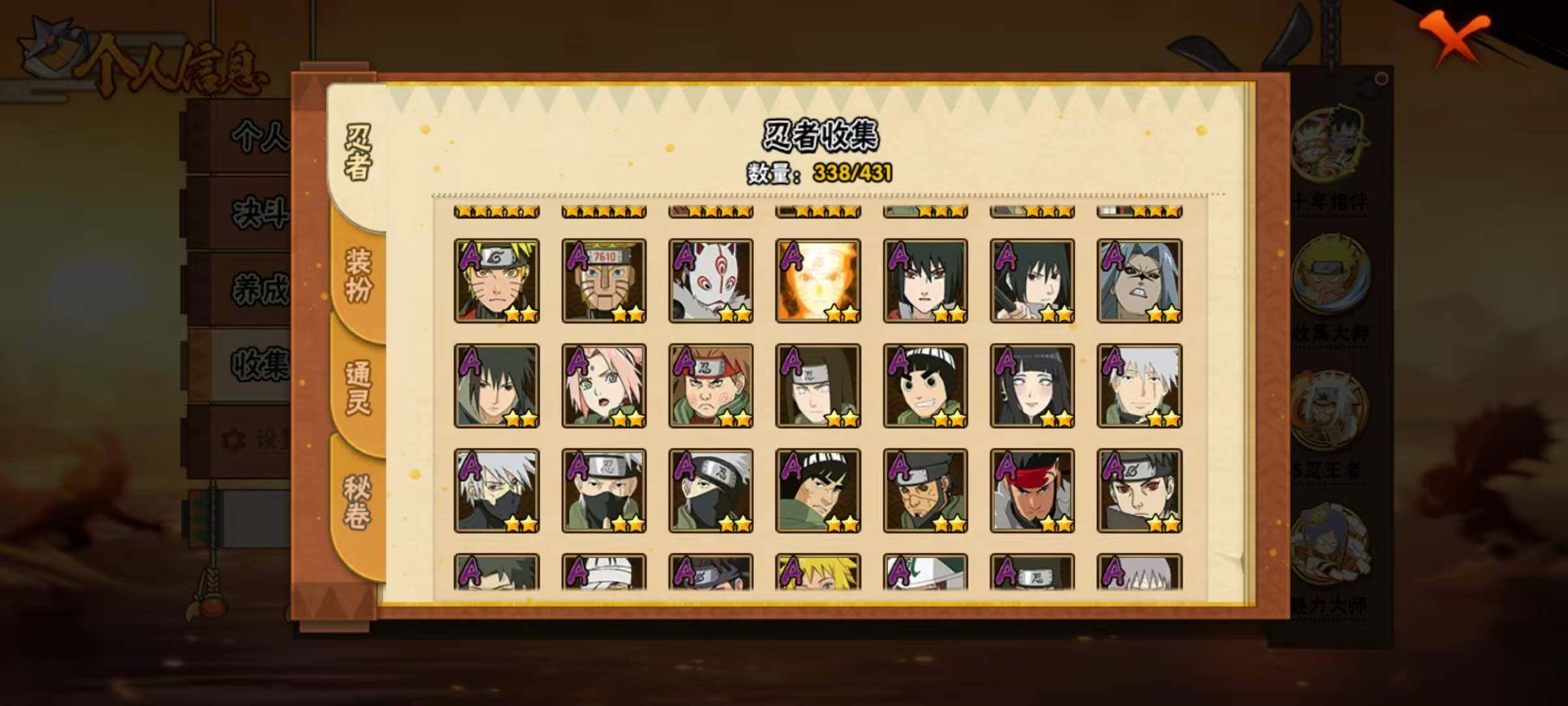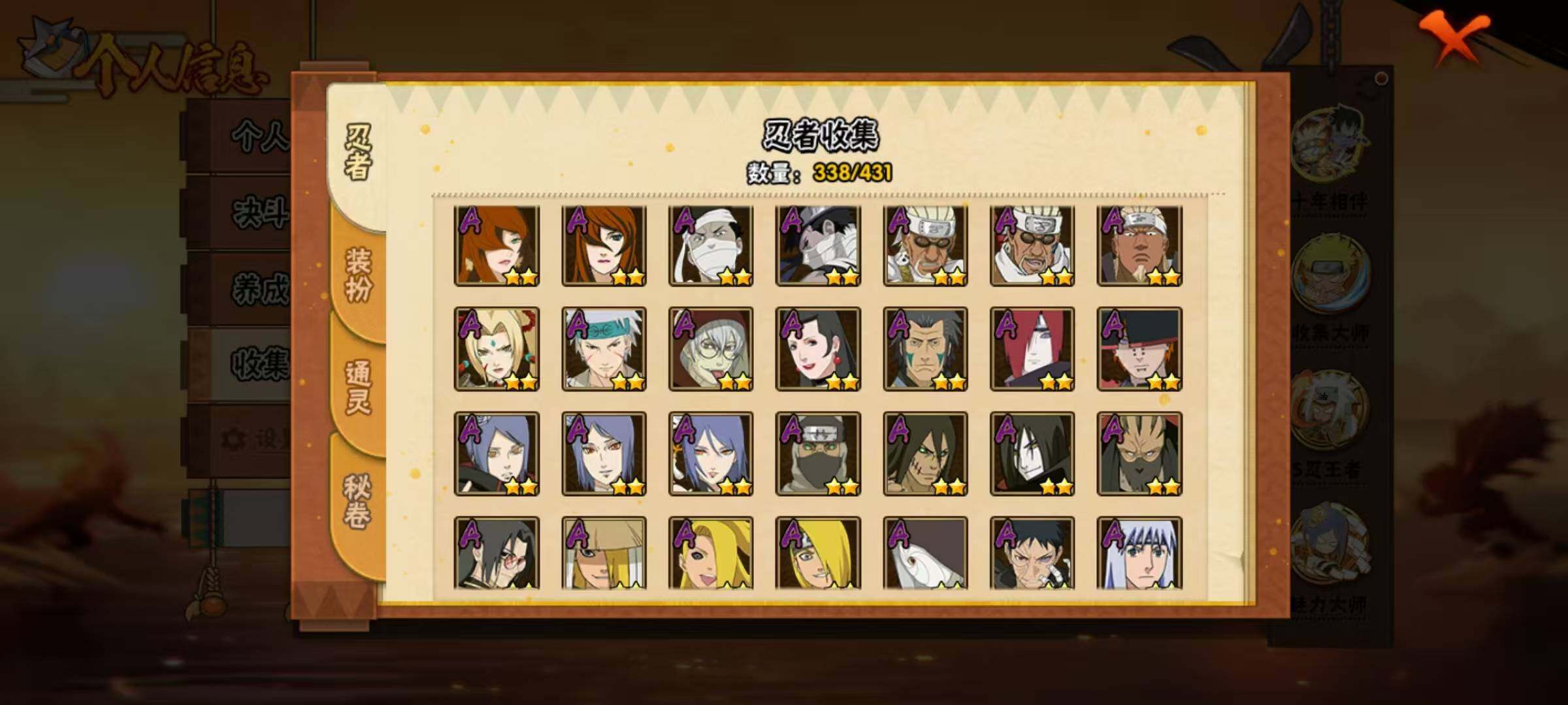 【S级忍者】:猿飞日斩「秽土转生」(3星),波风水门「秽土转生」(3星),千手扉间「秽土转生」(3星),千手柱间「秽土转生」(3星),宇智波鼬「秽土转生」(3星),宇智波斑「秽土转生」(3星),宇智波斑「秽土转生·解」(3星),大野木「忍界大战」(3星),春野樱「忍界大战」(3星),宇智波带土「忍界大战」(3星),艾「忍界大战」(3星),宇智波鼬「须佐能乎」(3星),宇智波止水「须佐能乎」(3星),旗木卡卡西「须佐能乎」(3星),宇智波斑「木叶创立」(3星),千手