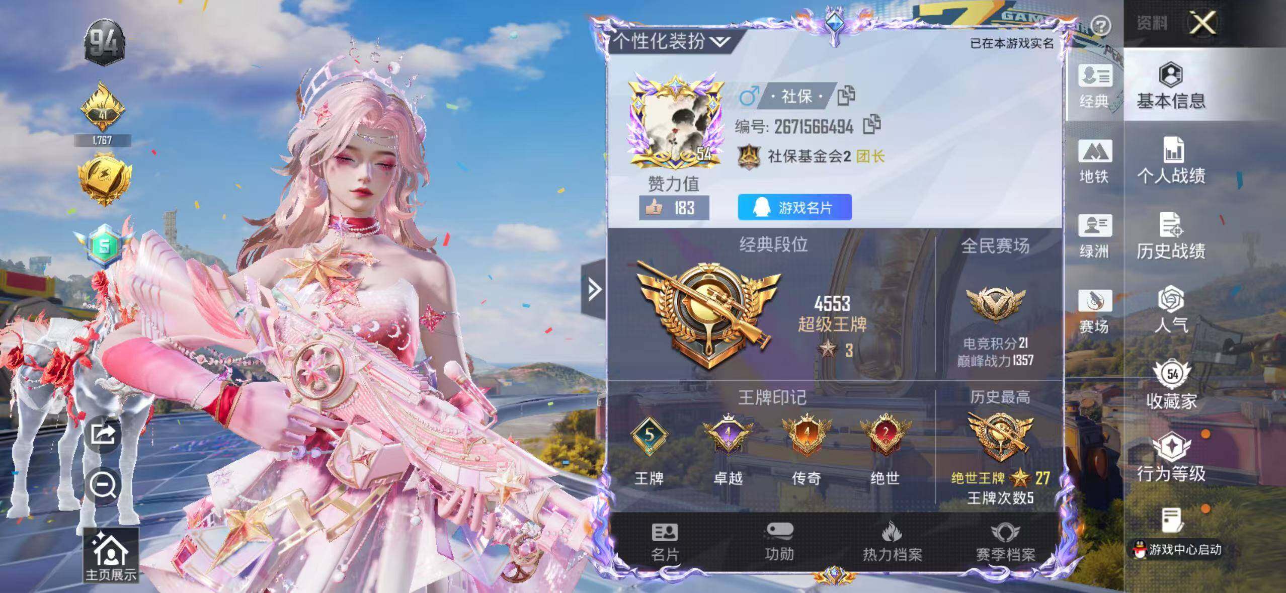 91套装/枪械9/装备179/载具2/战备104/王牌印记5/热力值40984