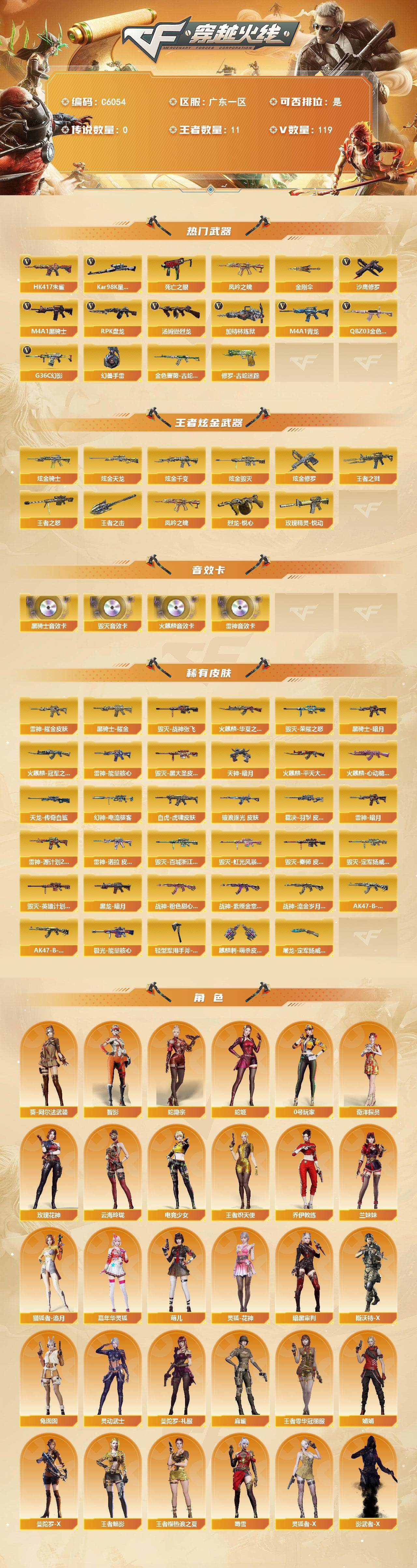 【C6054】广东一区-119V-11王者武器数-6炫金武器数