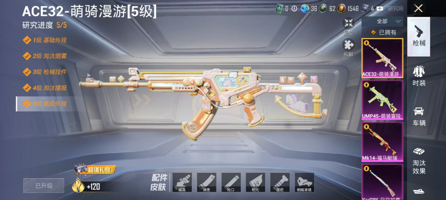 834-【2粉装4特效枪 可秒换绑不用等】 安卓Q区-14981热力值-32套装-56枪皮 【2粉装】 虎痴许褚 虹云熊熊【4特效枪】 Mk14-福马献瑞(5级) UMP45-萌骑冒险(5级) ACE32-萌骑漫游(5级) Kar98K-巳巳如意(5级)【4热门】 M416-蓝色火焰 破蛋小黄鸡 MG3-幻世战舞者