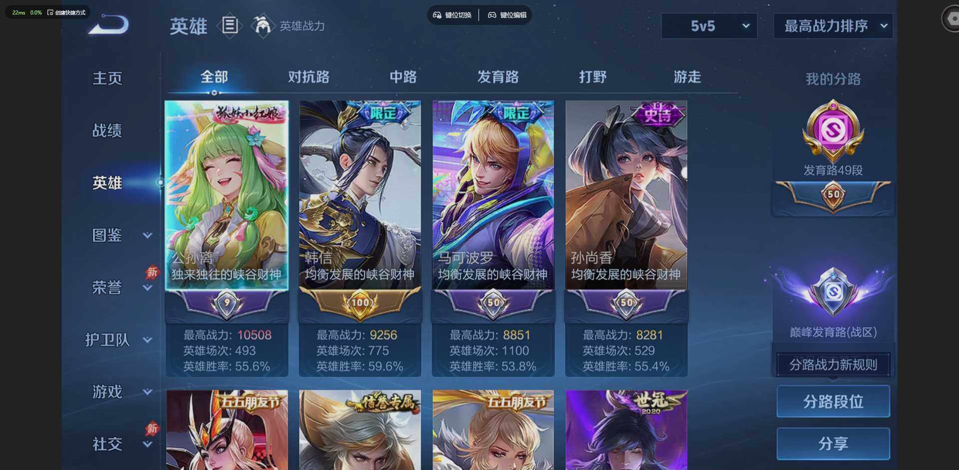 【金标韩信 金标花木兰 金标伽罗 金标李信 金标钟无艳 】贵族等级: V6 英