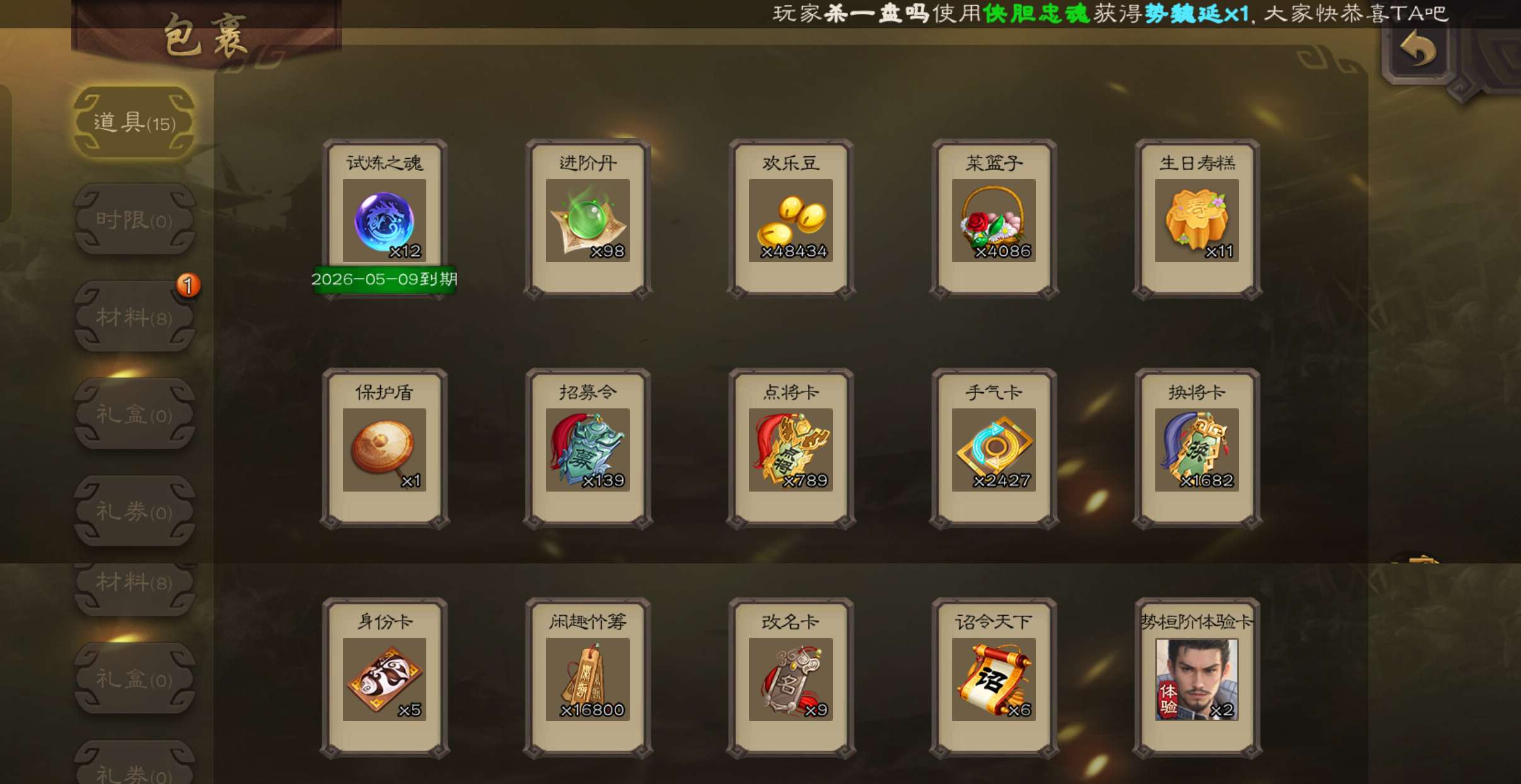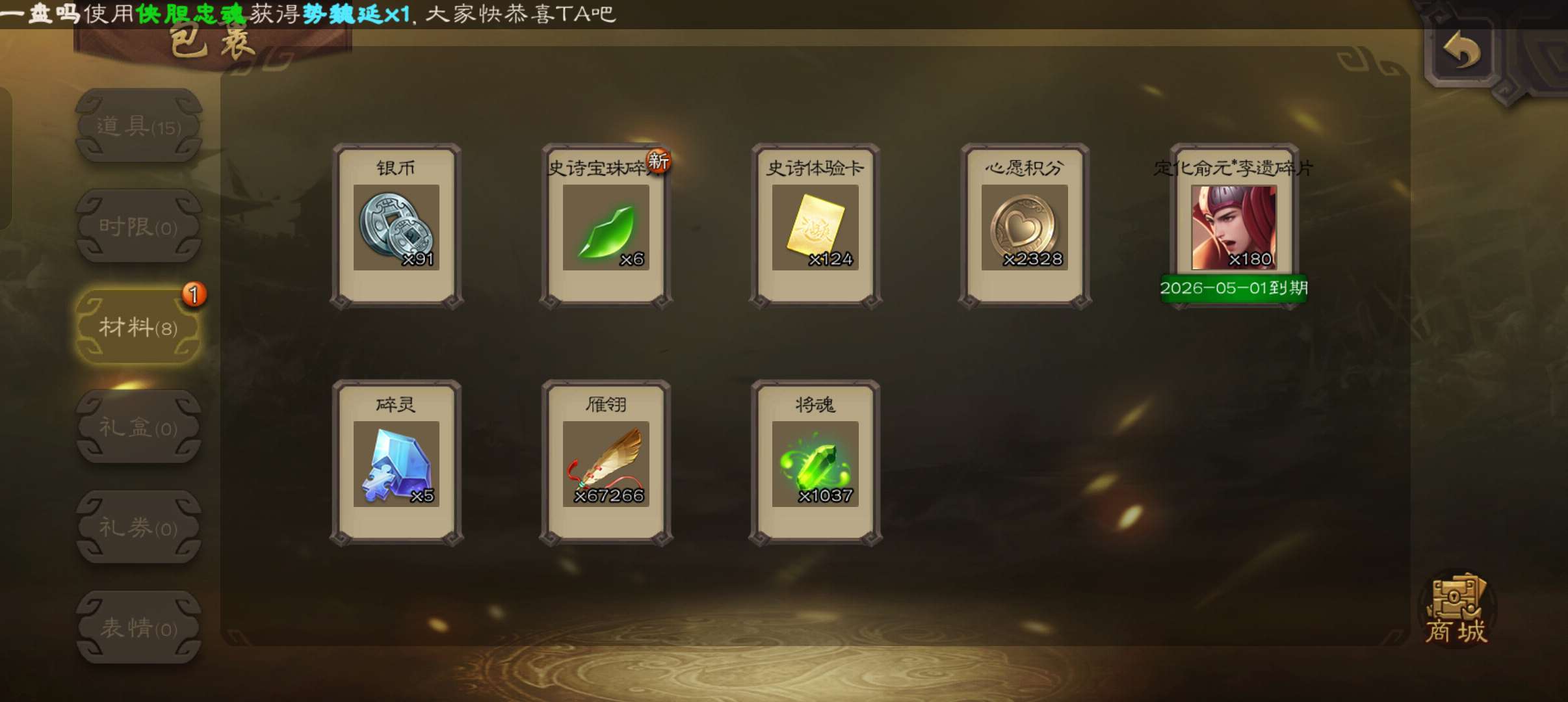 77将超级兵,6.7万羽毛,势太史慈神刘备谯周张星彩董允嵇康6史诗,139招募令4.8万豆