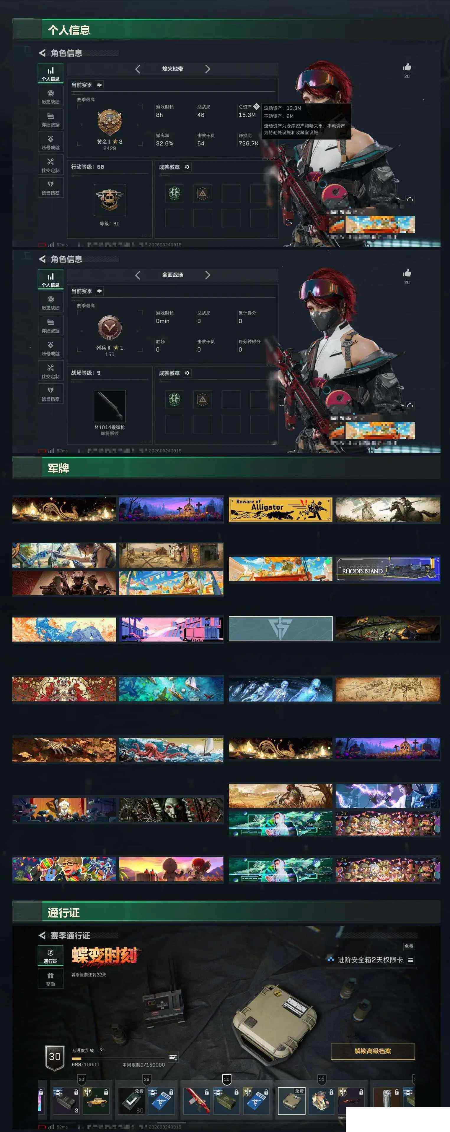 【sjs9869】*** 玩够能回血 2红皮双联动 烽火地带段位: 黄金 全面