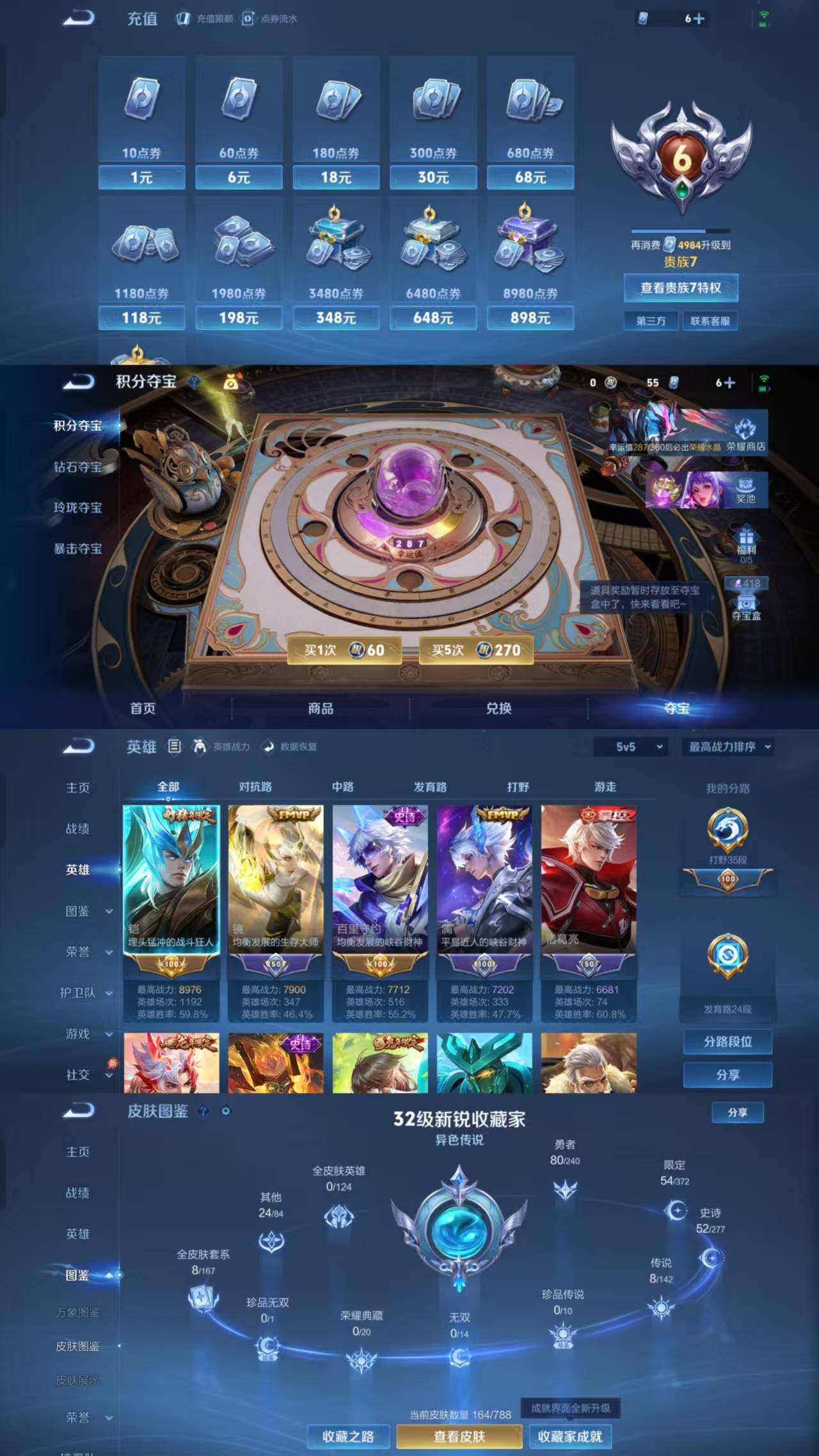 /zl17,12印记,2金标铠百里守约,打野35段发育路24段,8传说2史诗,神骥逐星野神树通天鸣野蒿冥王哈迪斯乘龙·淬吴钩炽阳神光逐花归海琥珀纪元,马超神骥逐星野,后羿神树通天,桑启鸣野蒿,铠冥王哈迪斯,孙策乘龙淬吴钩,铠琥珀纪元,澜逐花归海,镜炽阳神光