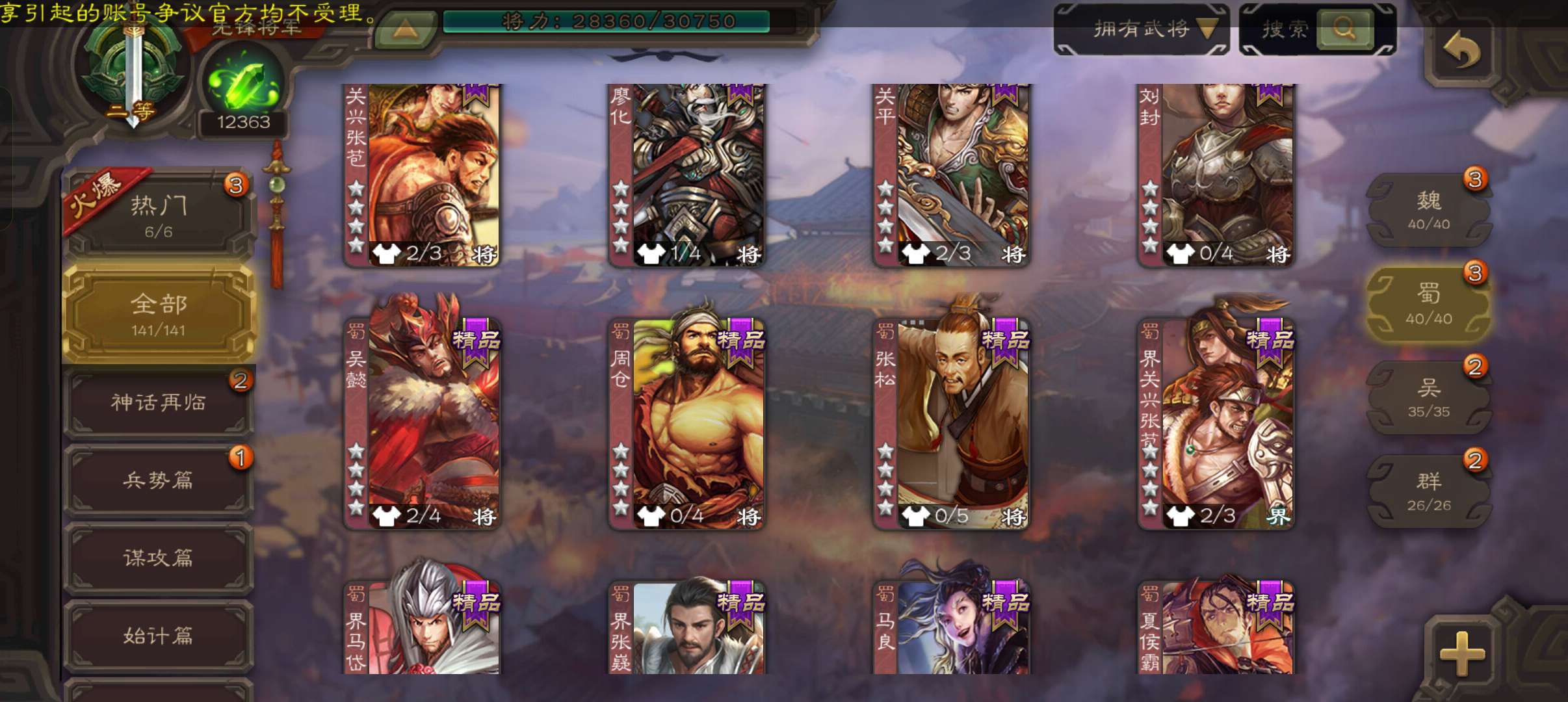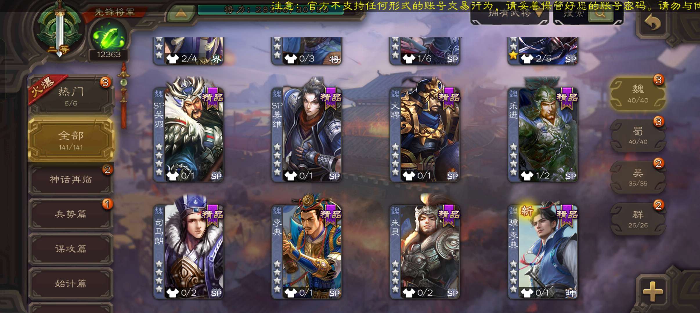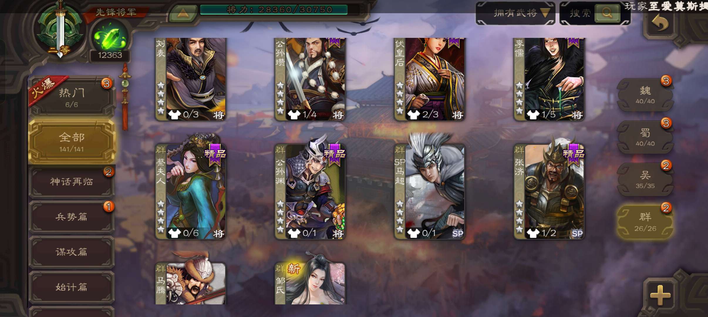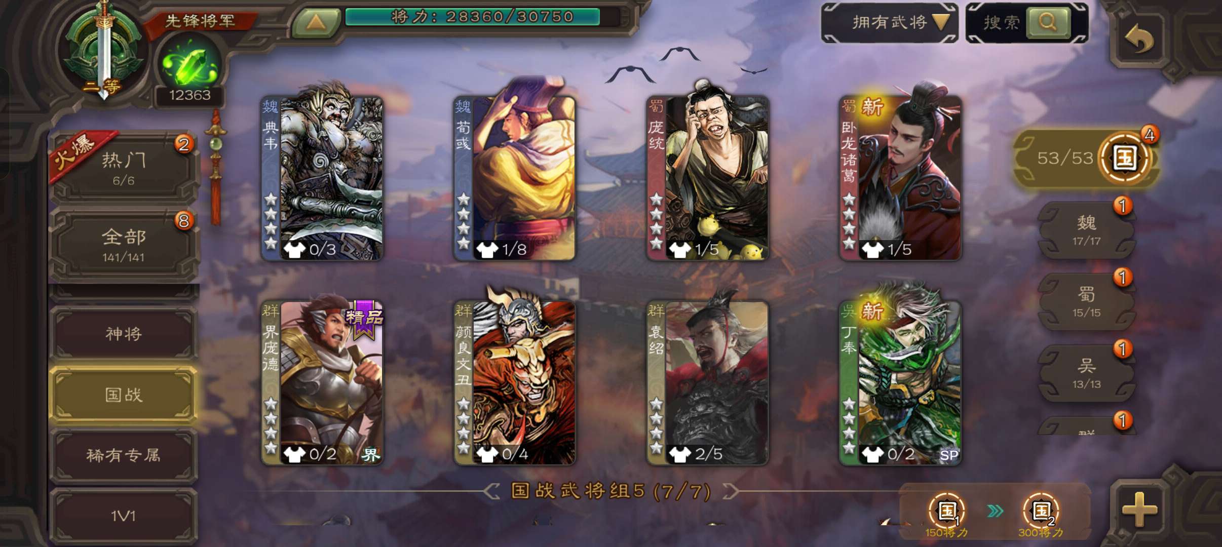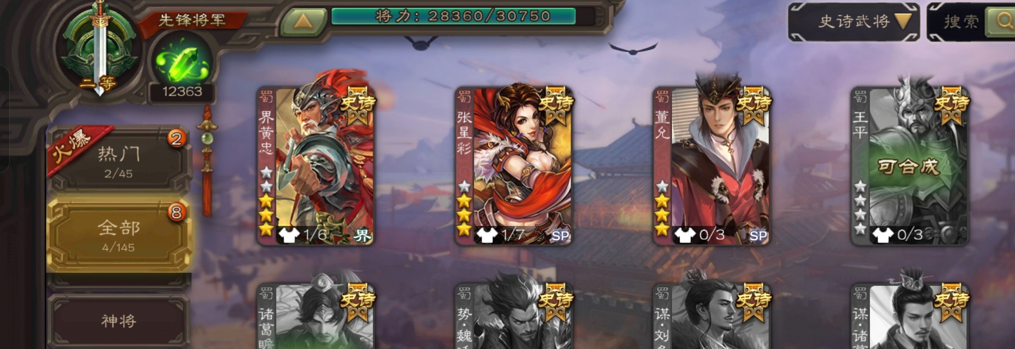 1.2万将魂8万羽毛,势太史慈界黄忠张星彩董允4史诗先锋,骥李典甘夫人谋高顺141将