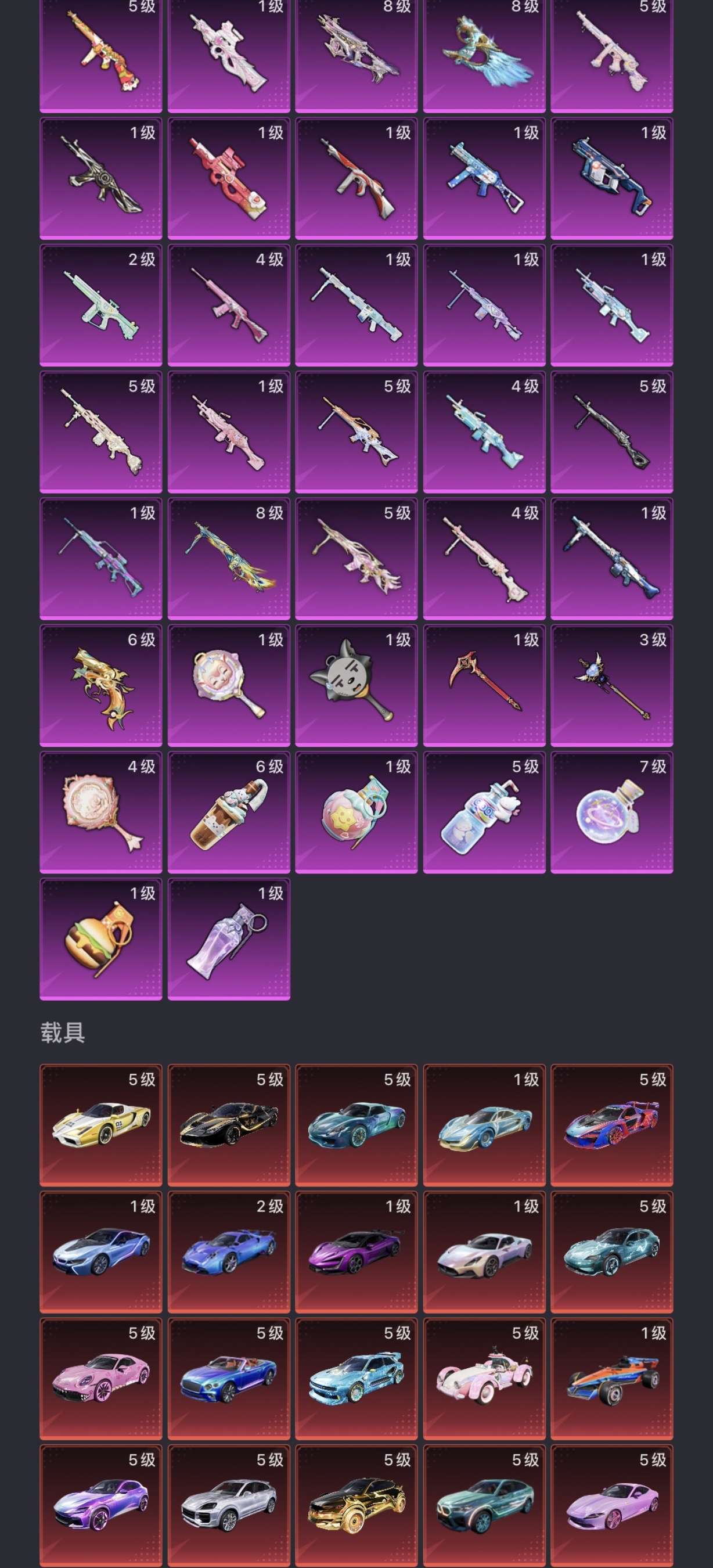 三满级红装,一六级红装,车皮和枪皮都是顶级,泡主播必备