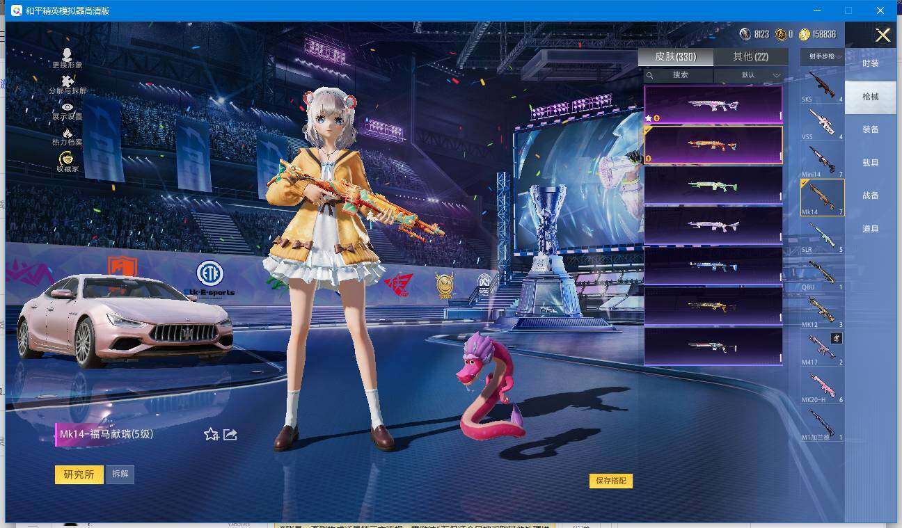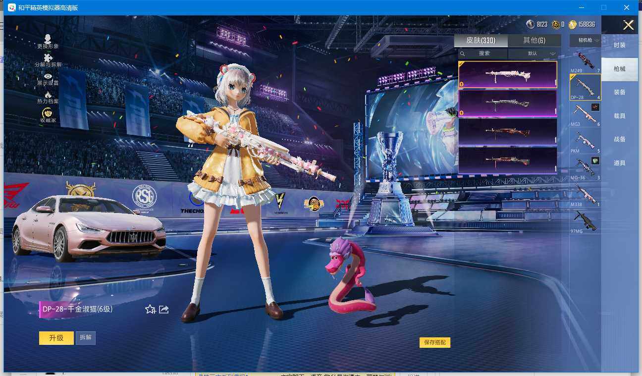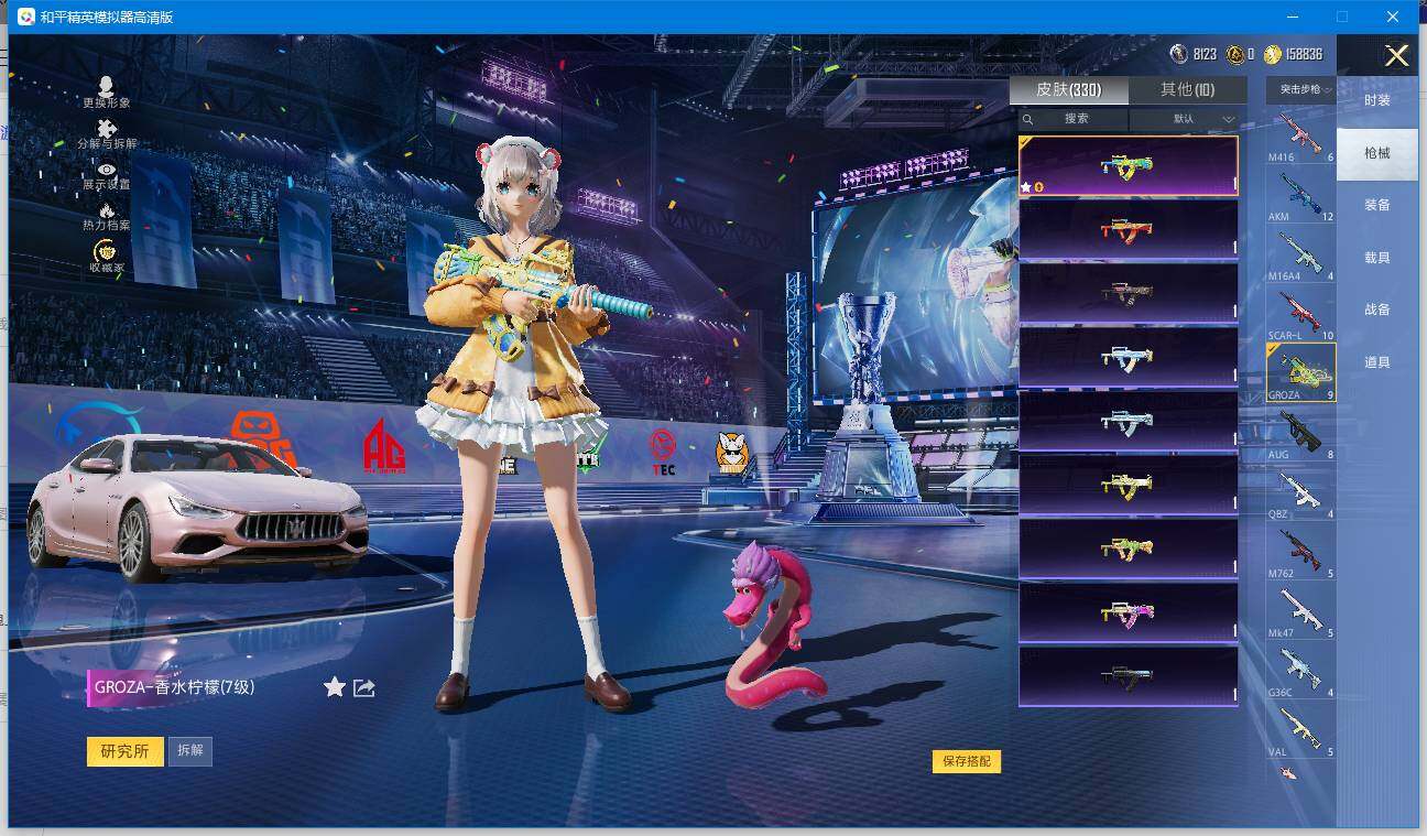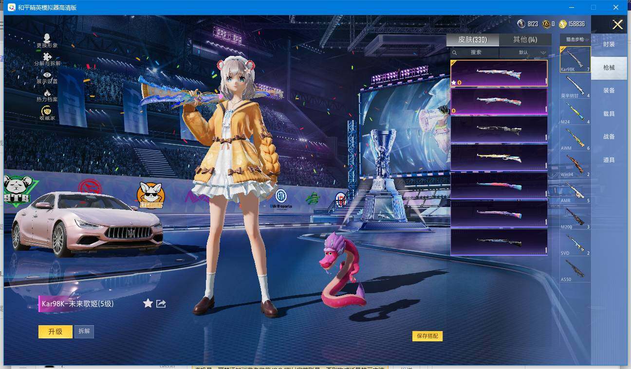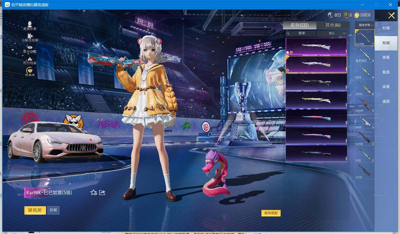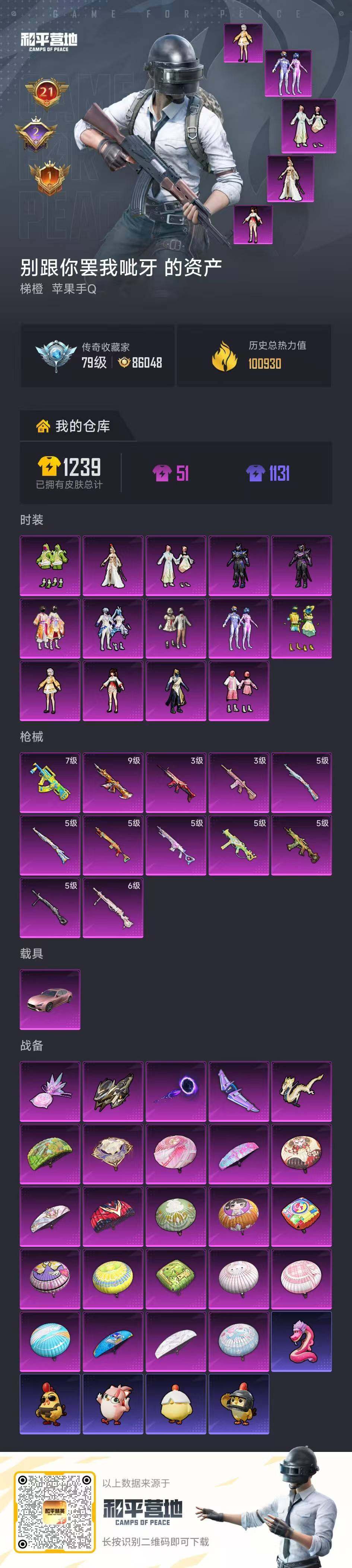 【和平精英连体王者荣耀】实名: 可修改 时装数: 220 载具数: 1 枪械数: 330 战备数: 235 热门装扮: 奇异狩猎者,梦幻火箭(新101),宝贝奶油派,迅捷狂鲨,鹰眼刺客,都市猎人,香水柠檬,花间之火,恐龙拽拽,激萌罗小黑,派对舞王,银碳小老虎,飒粉甜心,黄族统领,小可学妹,呆萌星弥,未来歌姬,宙之时溯,星云暗核,莲影清波,萨利娅 载具: 玛莎拉蒂Ghibli(粉) 稀有枪皮: S
