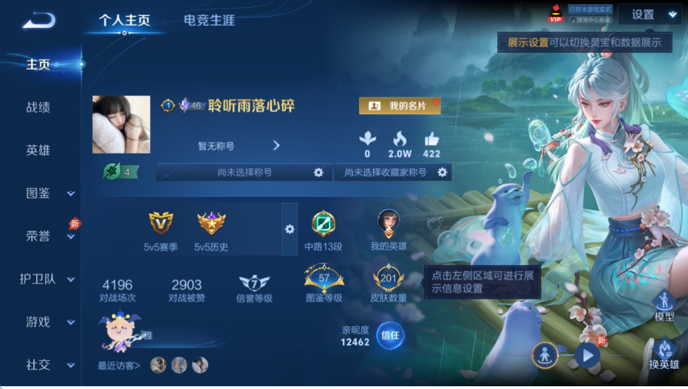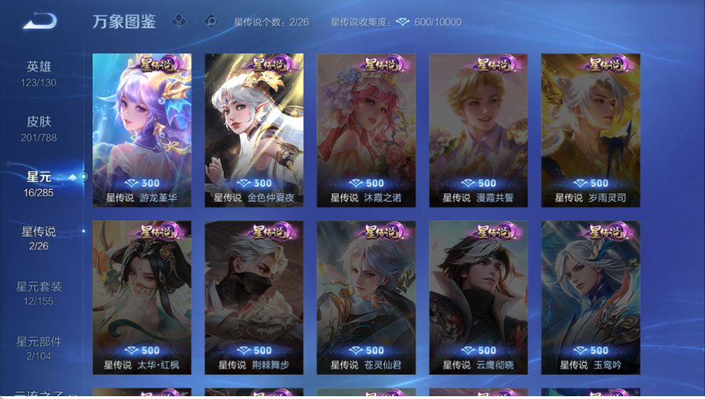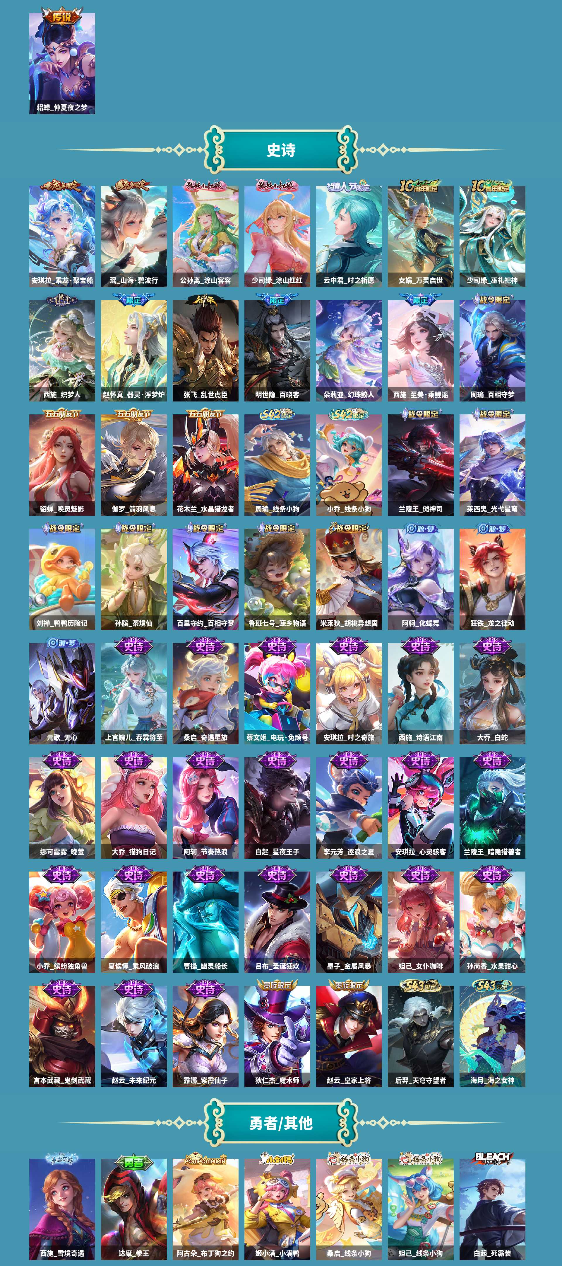 妹妹号!小乔+瑶+火舞3无双!瑶典藏皮肤数量201印记总数1