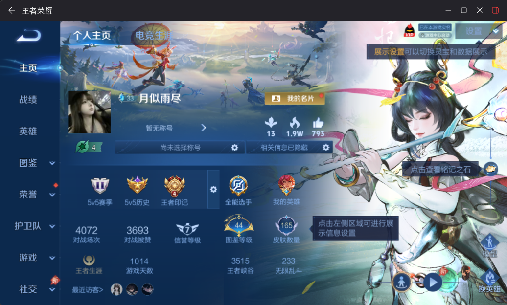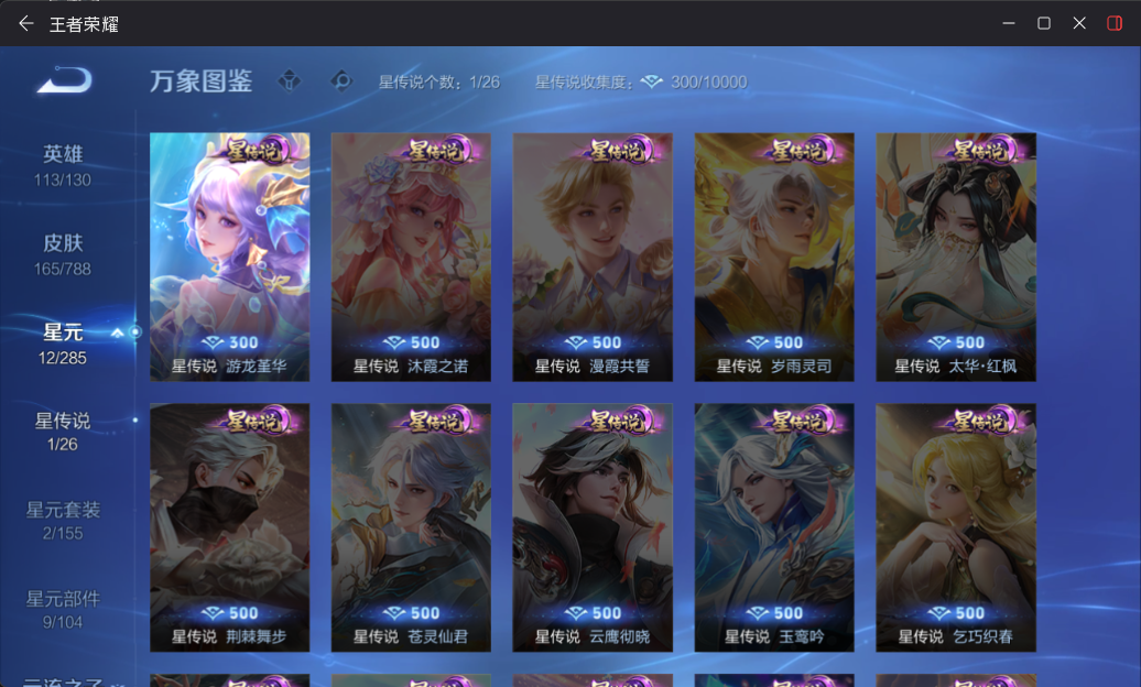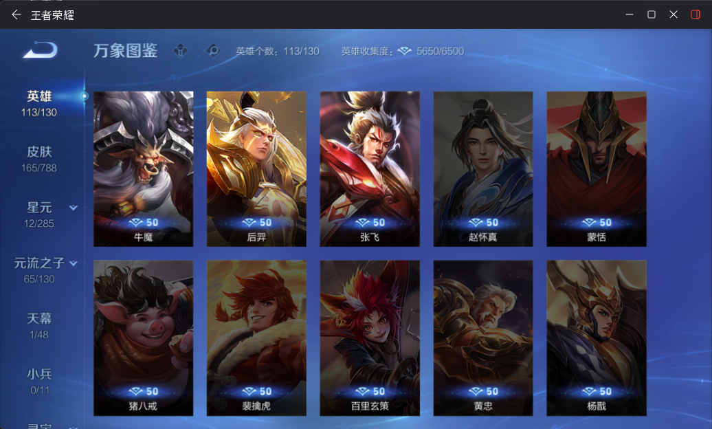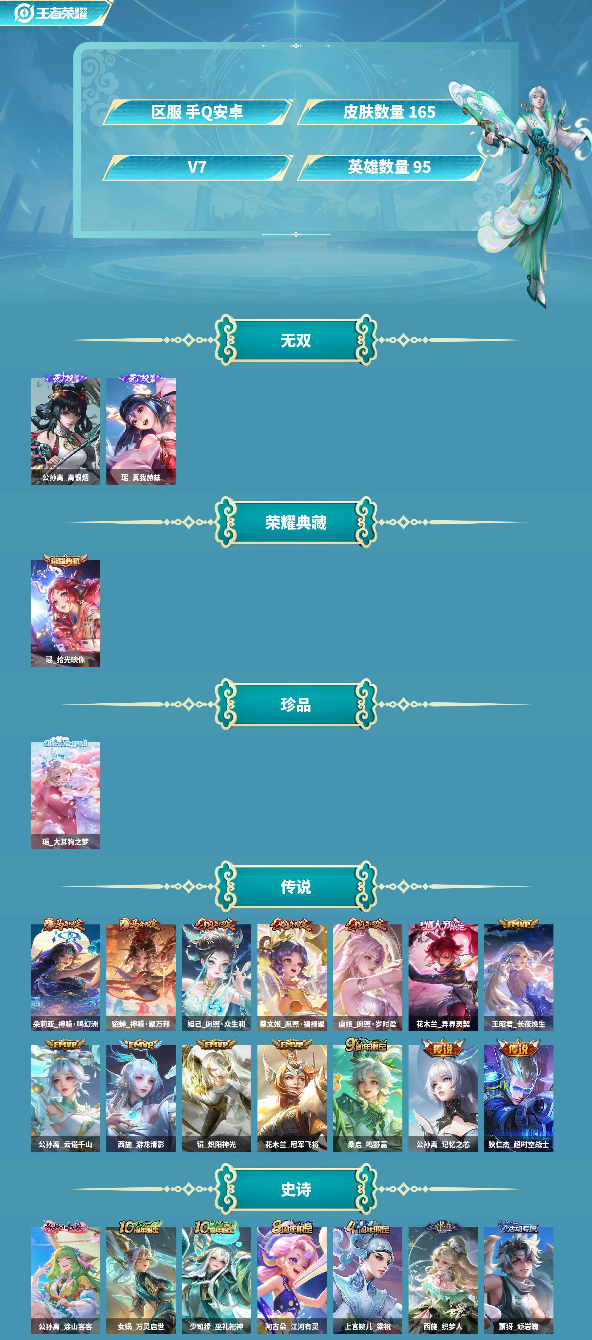 棉花糖天幕!离恨烟!瑶无双+典藏+珍品!皮肤数量165印记总