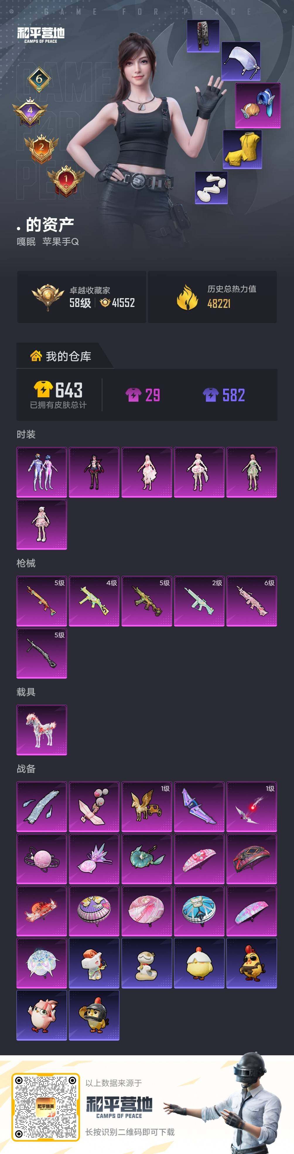 【特价出售/店主推荐--热门套装新101金鞋】苹果 手Q-6粉装-6特效枪-1载具-8粉色飞行器-48221热力值-6王牌印记-129套装-172枪皮【热门品类】:粉装-梦幻火箭,套装-派对舞王,套装-深海小丑鱼,套装-龟仙人,套装-潮萌小黄鸭,套装-红熊茄茄【粉色套装】:角色-绝对恒星,粉装-梦幻火箭,角色-奇迹舞步 美雪,角色-花灵,角色-羊梦糖心,角色-罪夜之冕【粉色枪皮等级】:UMP45