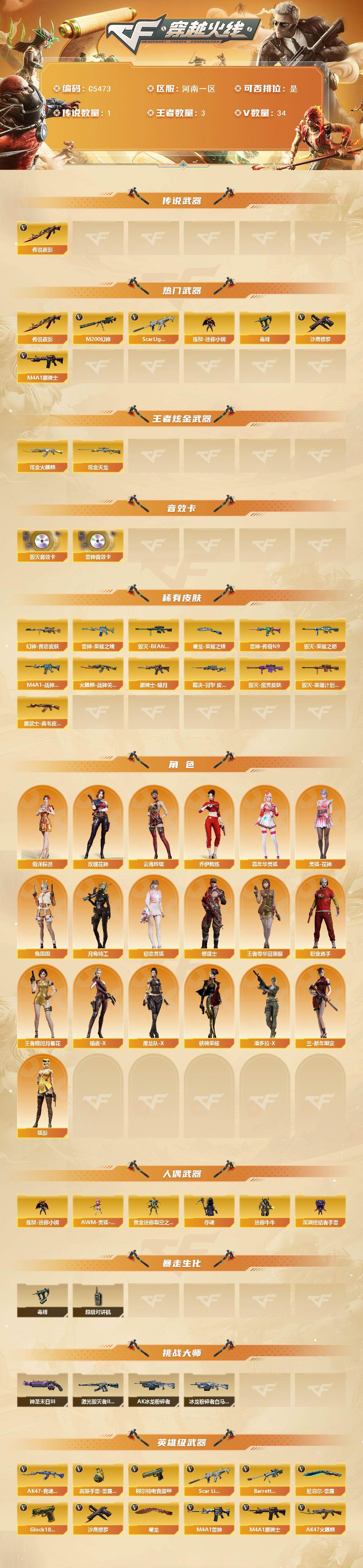 【C5473】河南一区-37V-3王者武器数-2炫金武器数