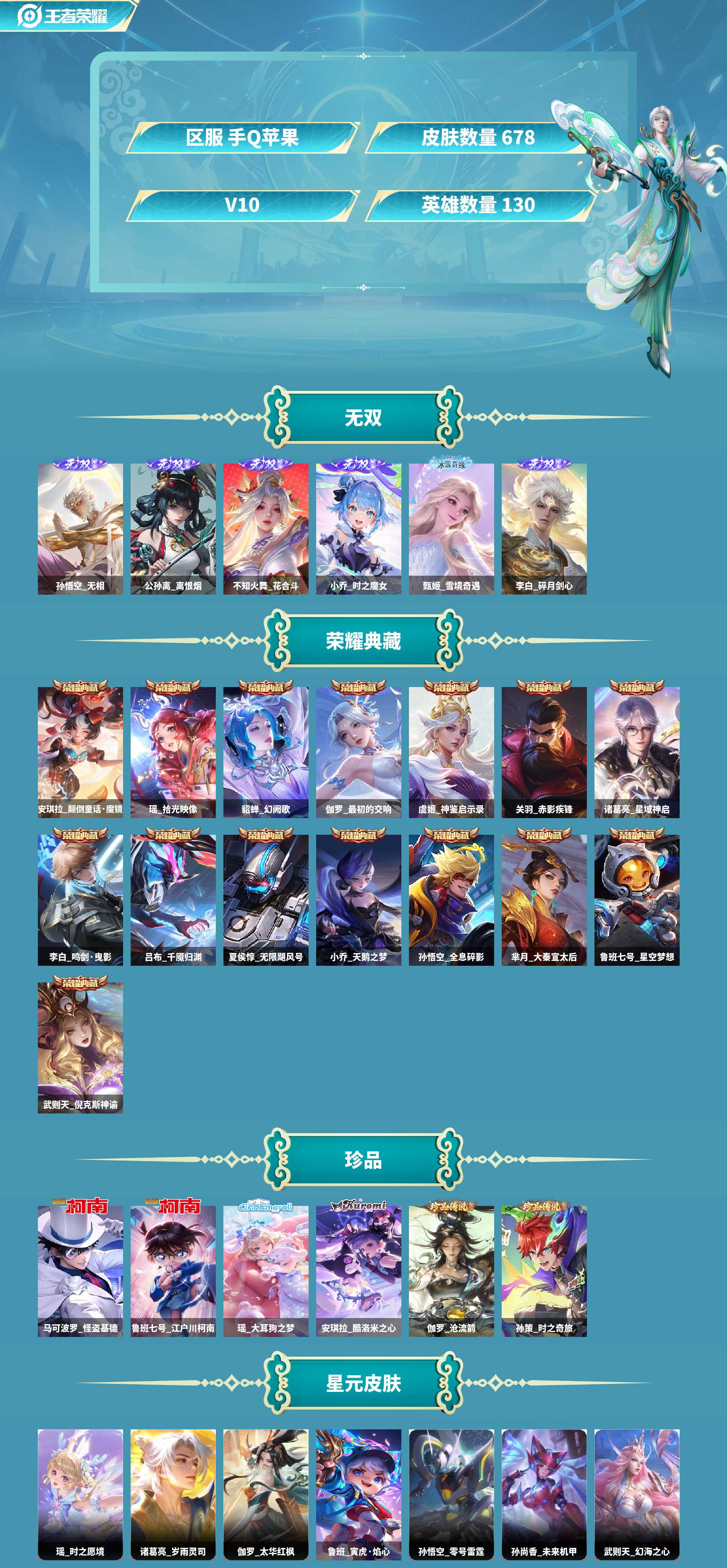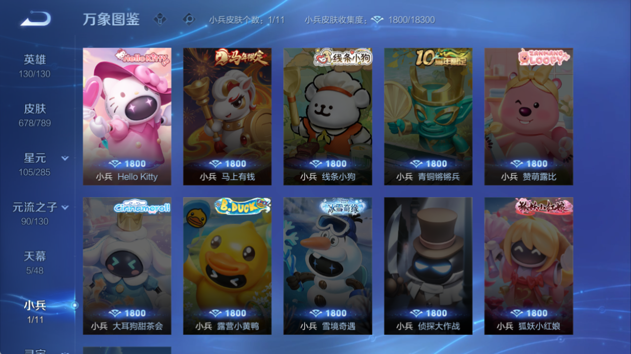 4天幕!HK小兵!离恨烟6无双!15典藏!6珍品!皮肤数量6