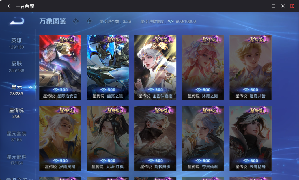 双天幕!花合+离恨3无双!李白2典藏!假面!心动朵莉亚!皮肤