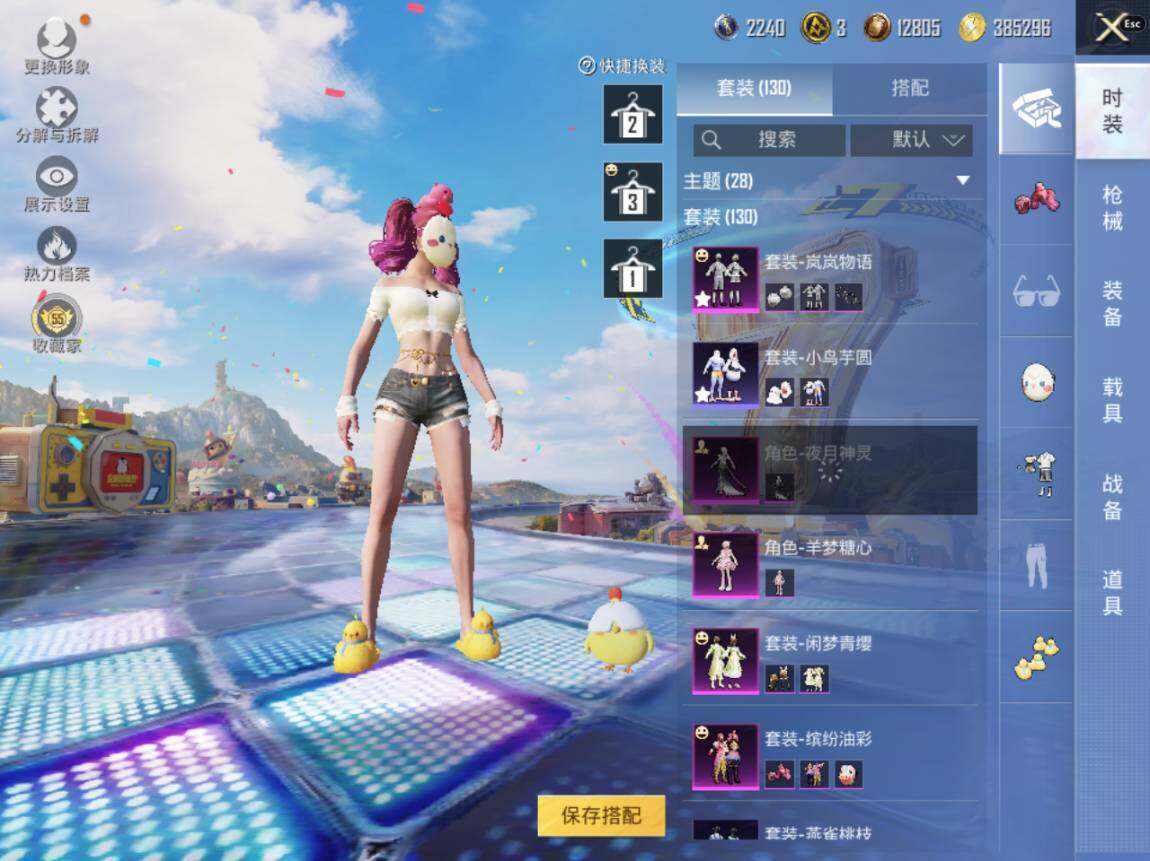 【粉色套装】:粉装-缤纷油彩,粉装-岚岚物语,粉装-闲梦青缨,角色-羊梦糖心,角色-夜月神灵