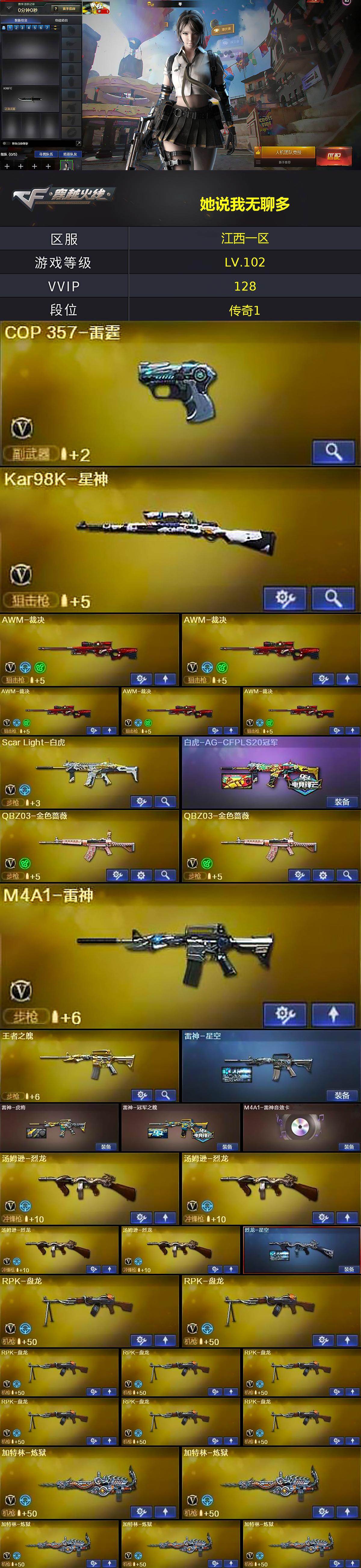【C6362】江西一区-143V-21王者武器数-3炫金武器数
