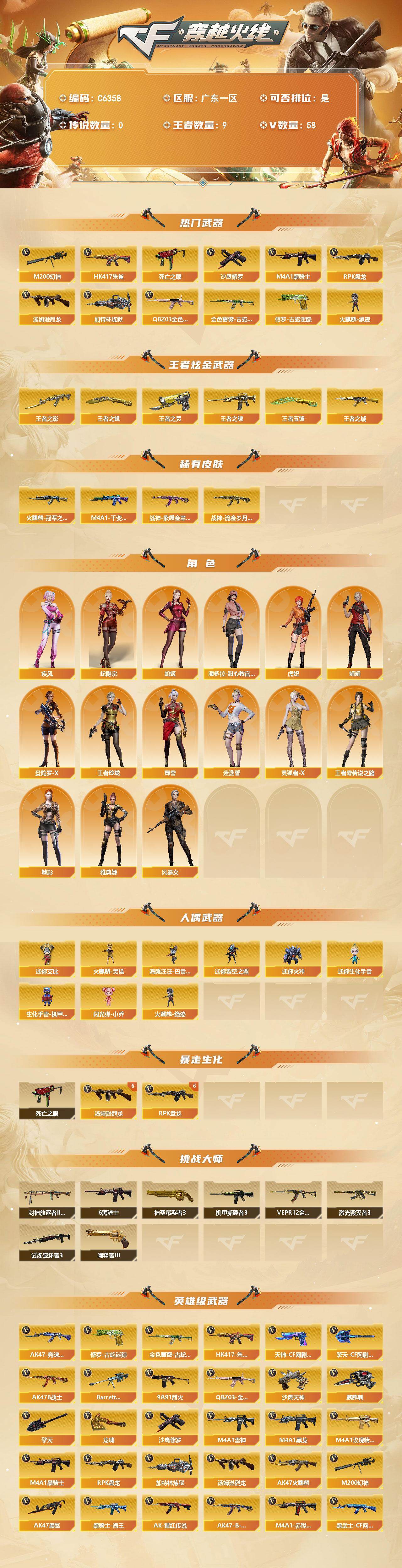 【C6358】广东一区-62V-9王者武器数-0炫金武器数