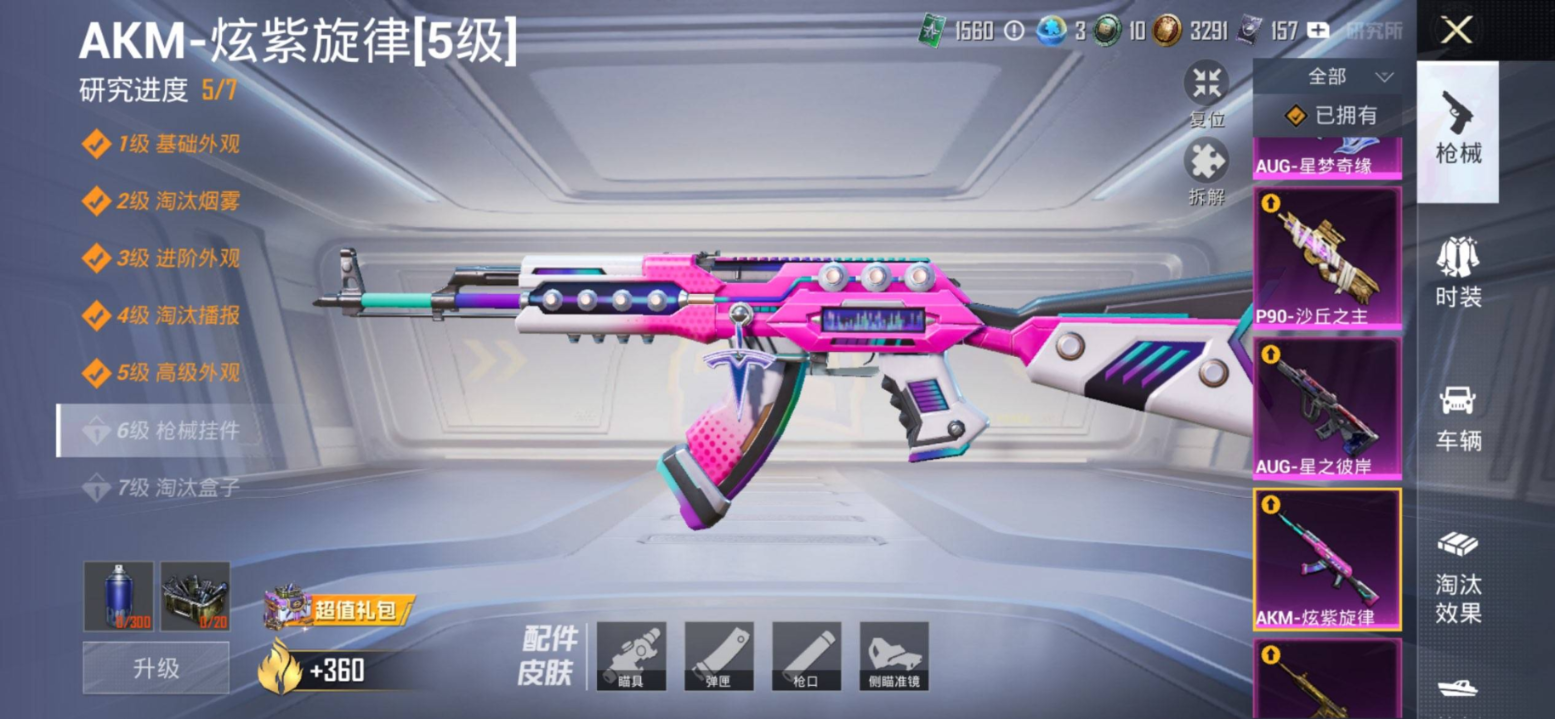 【8特效枪】M416-五爪金龙/6级,AUG-星之彼岸/1级,Mk14-福马献瑞/5级,AA12-G-萌骑幻想/5级,P90-沙丘之主/3级,D