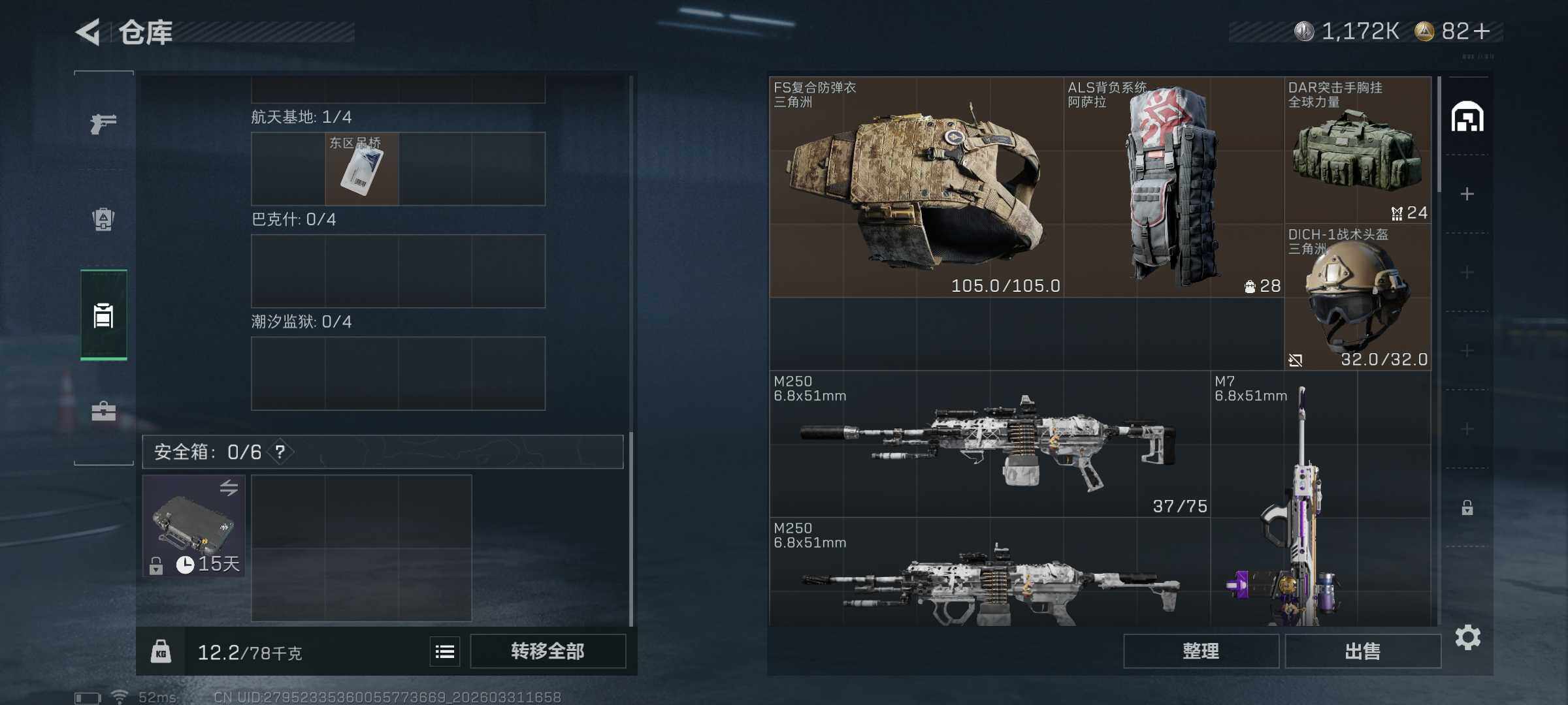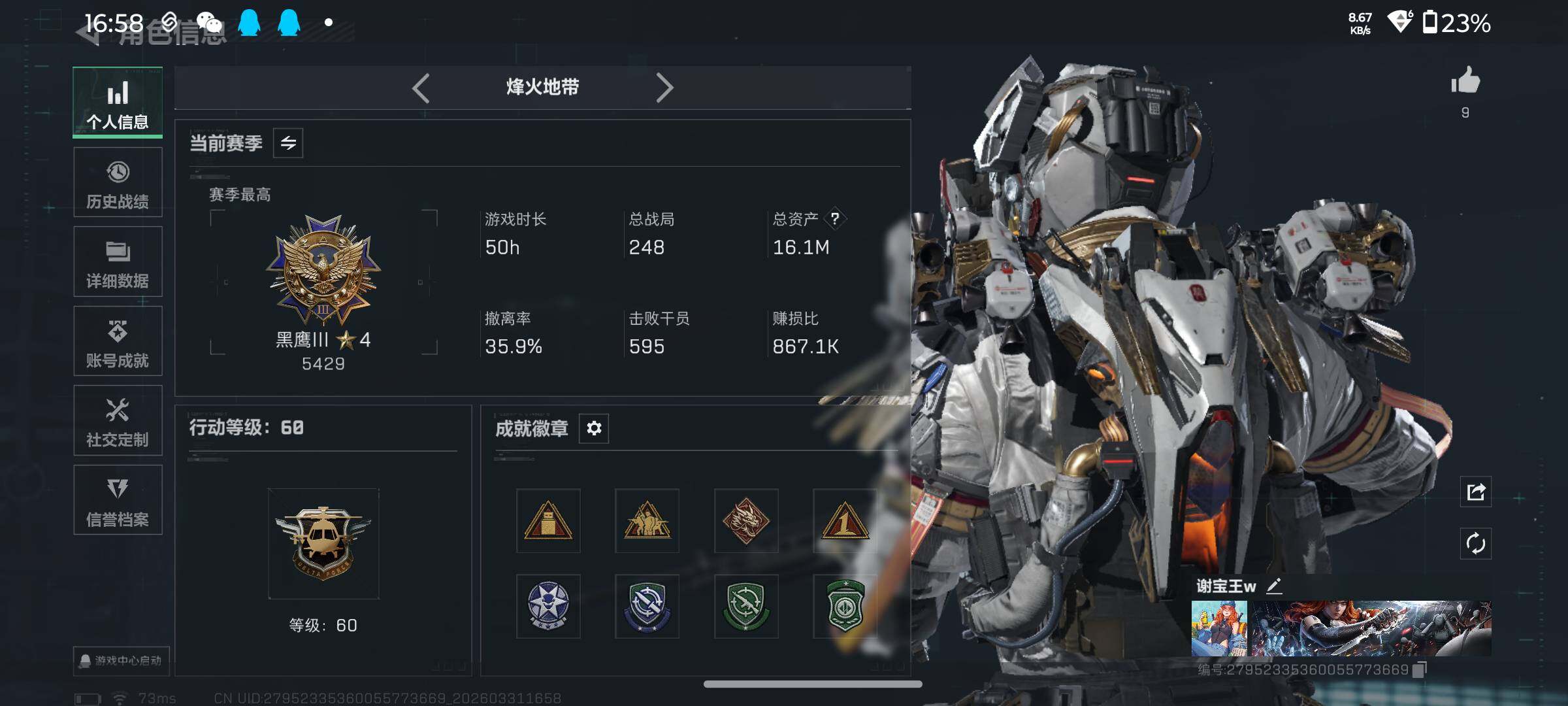 16m总资产-1172k哈夫币-60烽火等级-黑鹰-22战场等级-上等兵