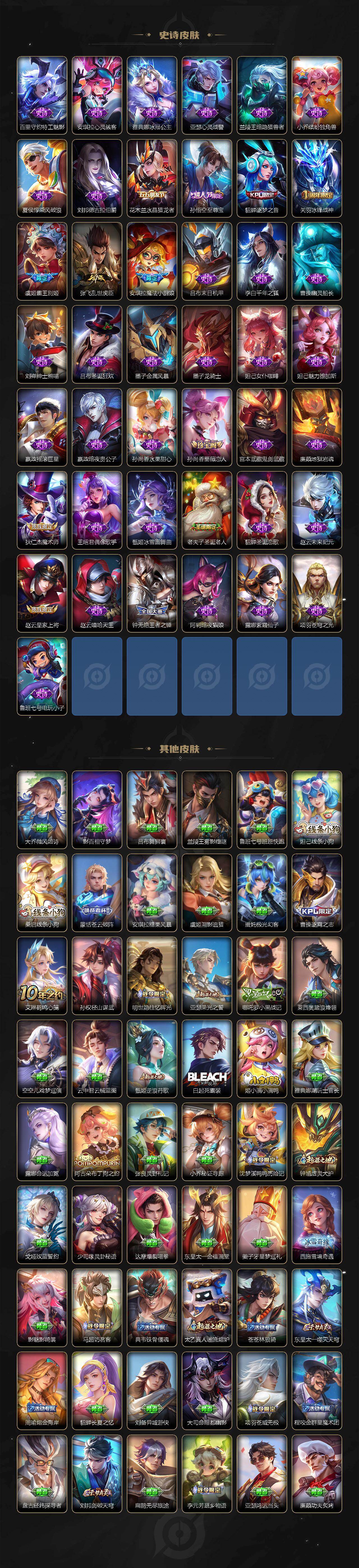【16777194】贵族等级9/荣耀典藏数量5/传说皮肤数量20/史诗皮肤数量