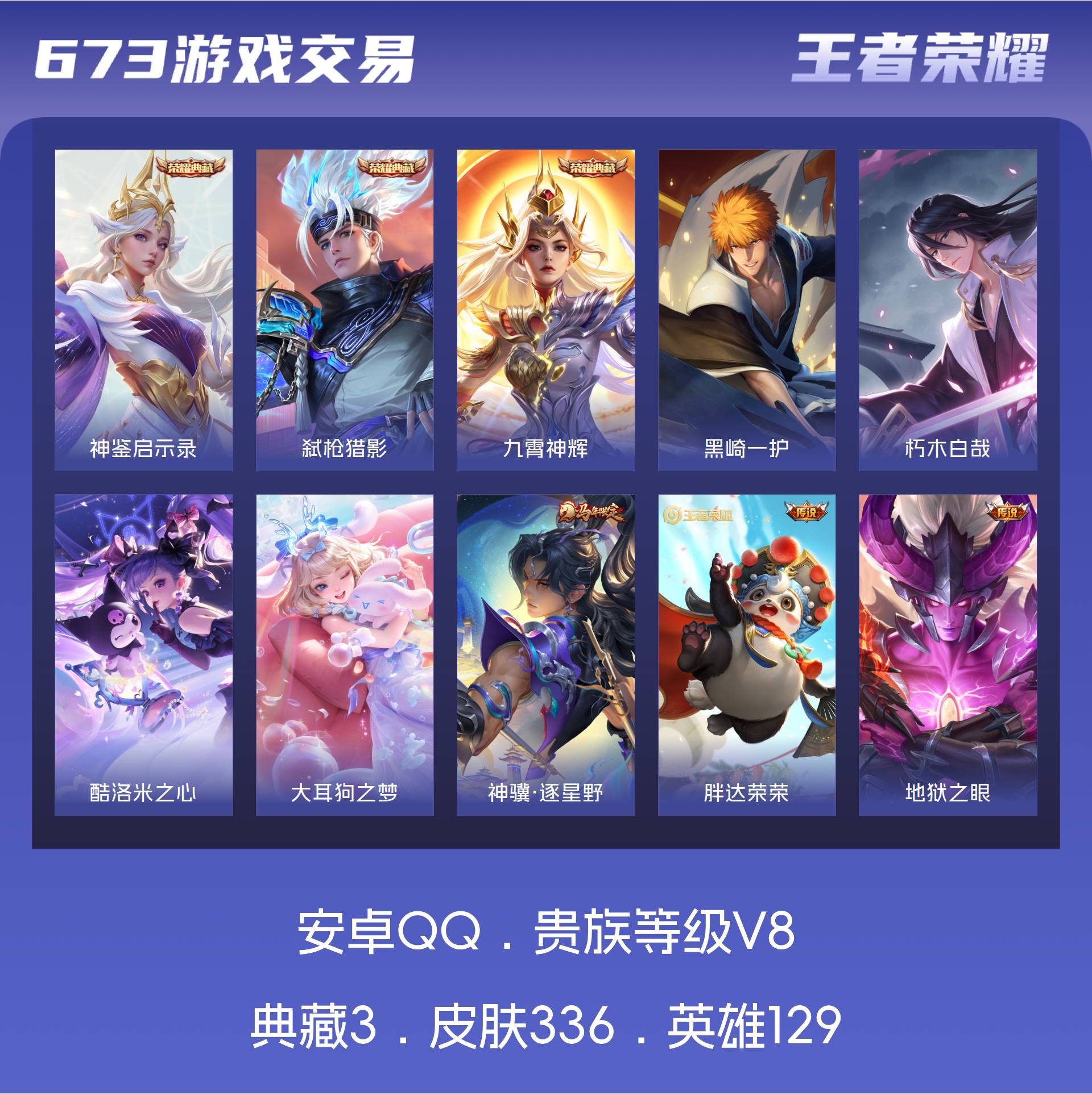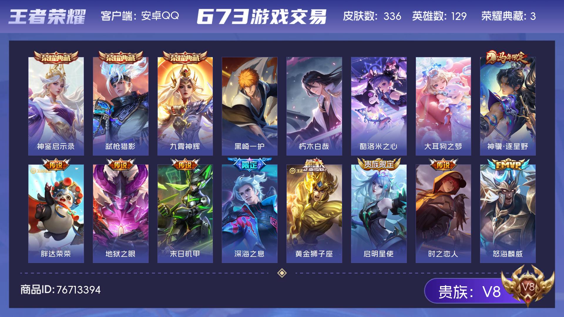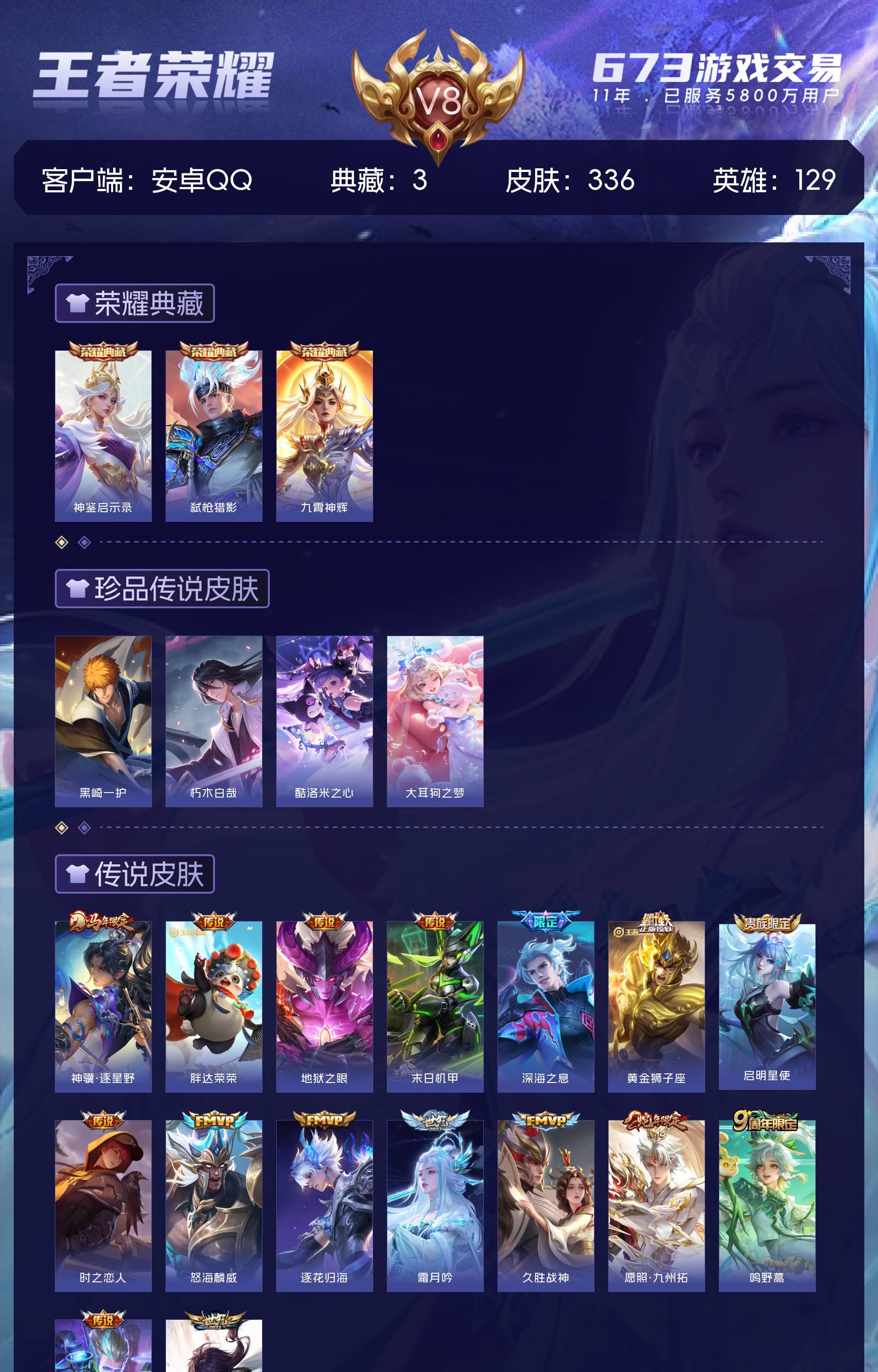 V8 皮肤336 英雄129 永恒钻石 荣耀典藏3 珍品传说4 传说16