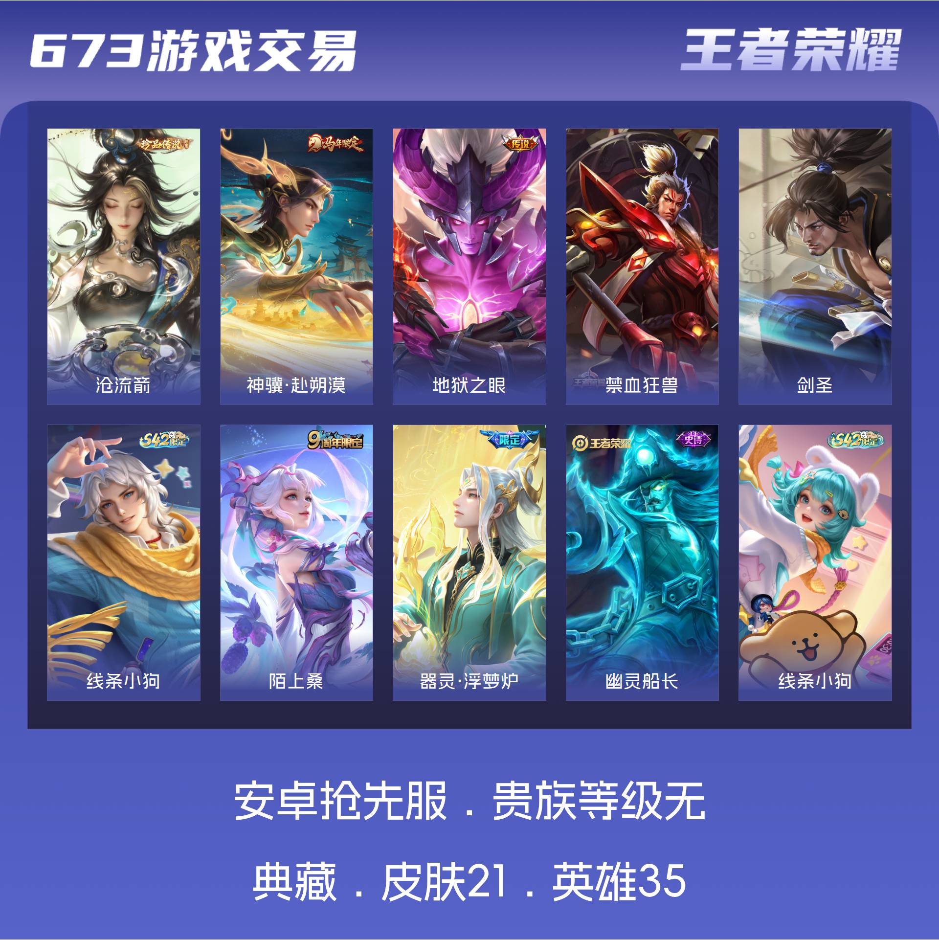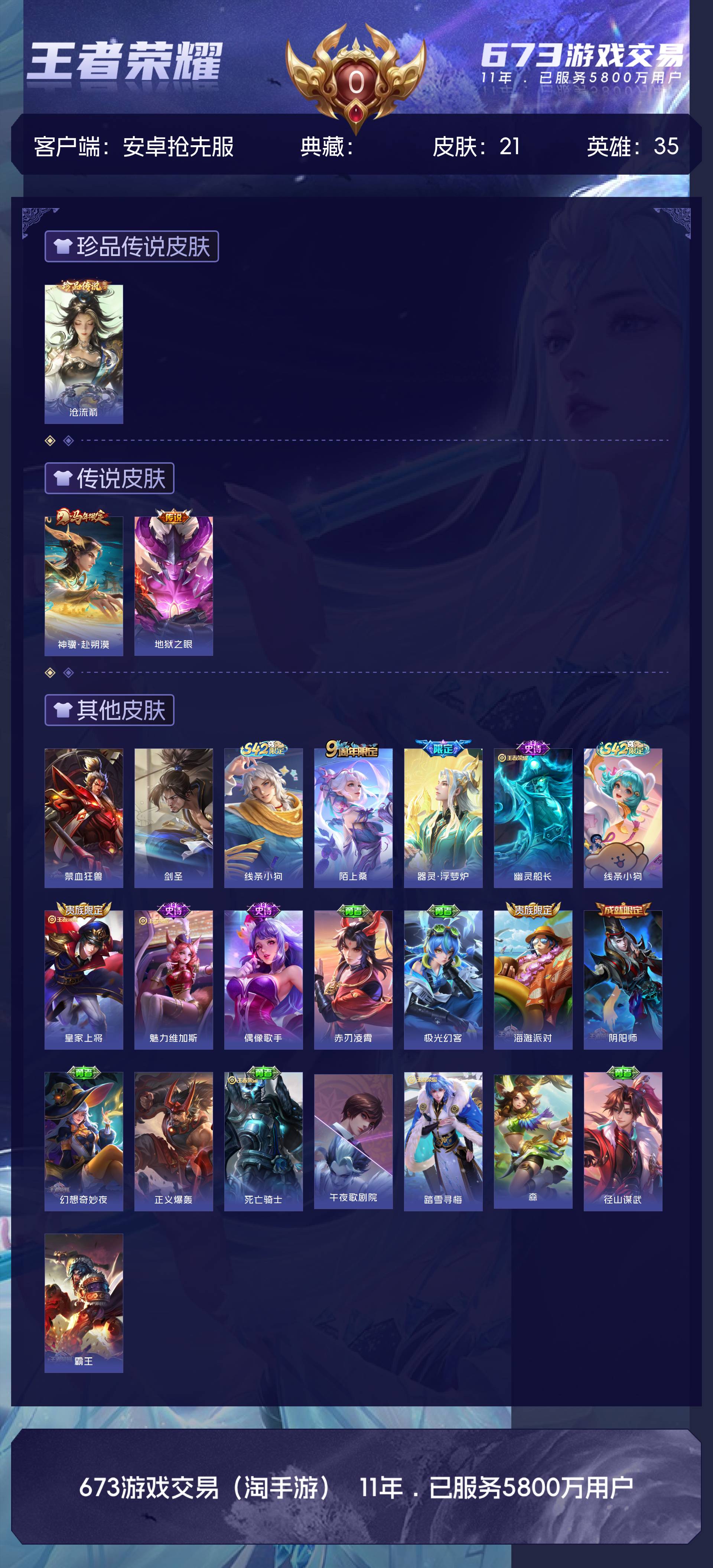 皮肤21 英雄35 传奇王者 珍品传说1 传说2