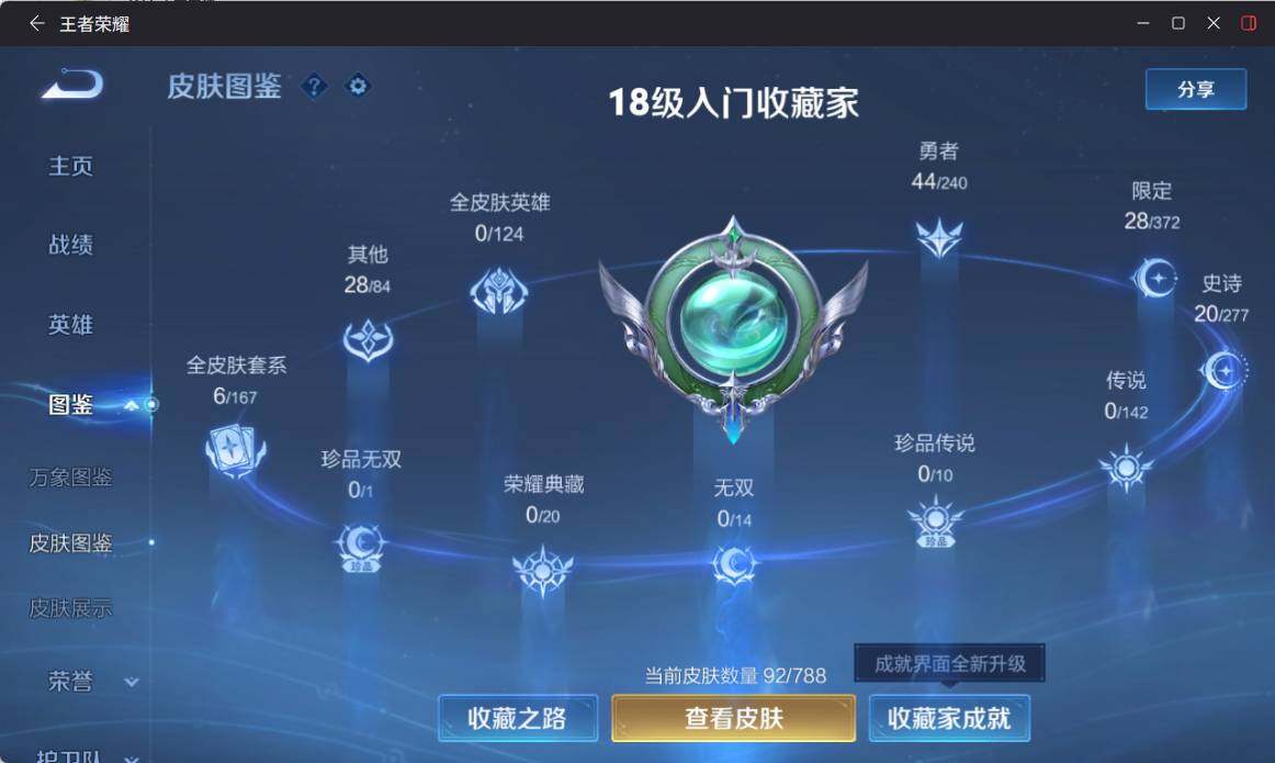 【16777297】贵族等级6/史诗皮肤数量20/皮肤数量92/英雄数量101