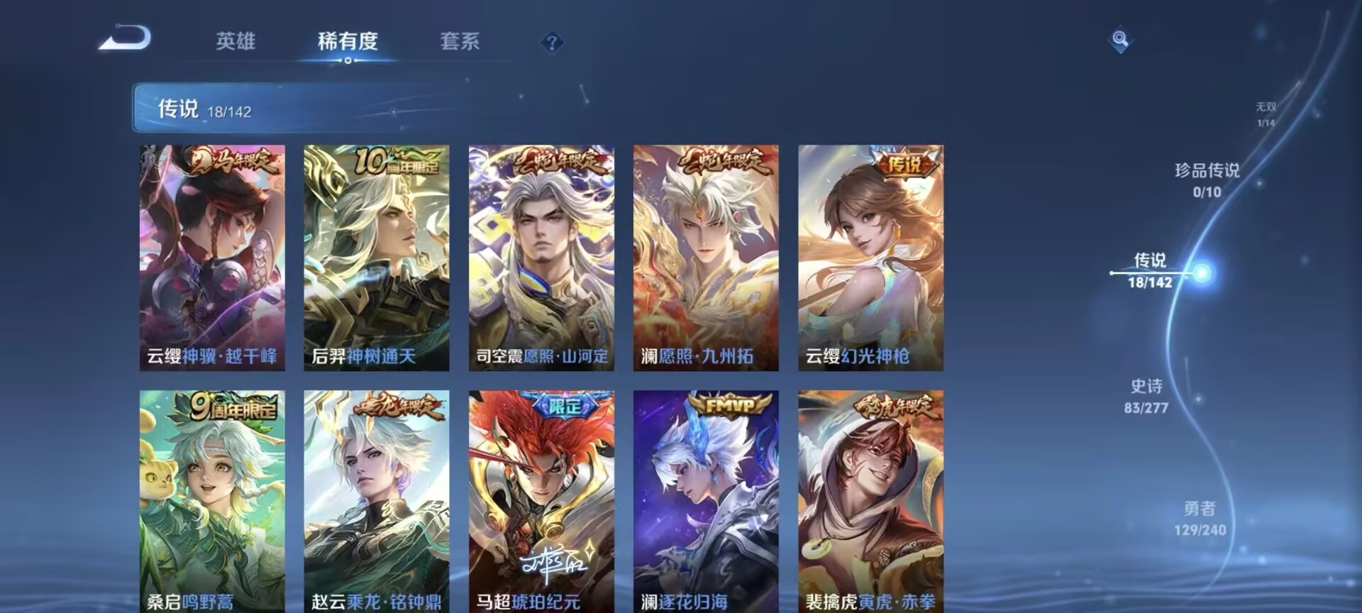 亏本清仓捡漏速抢皮肤数288无双皮肤数1传说皮肤数18史诗皮