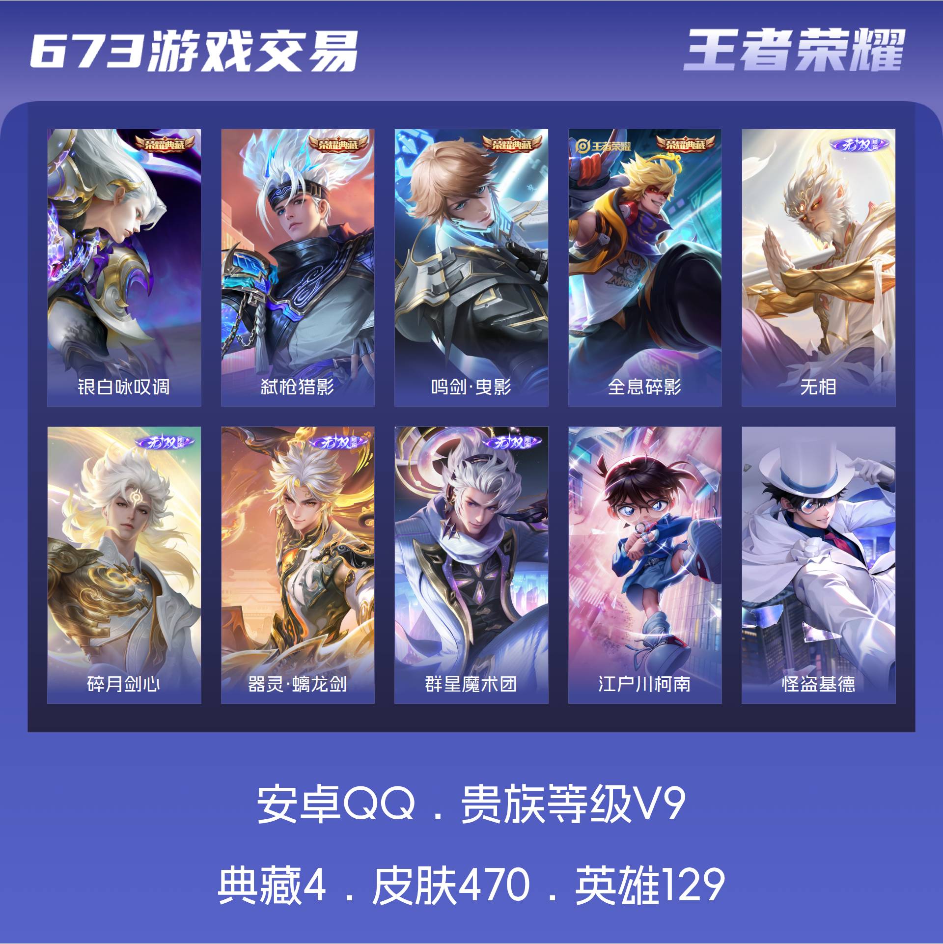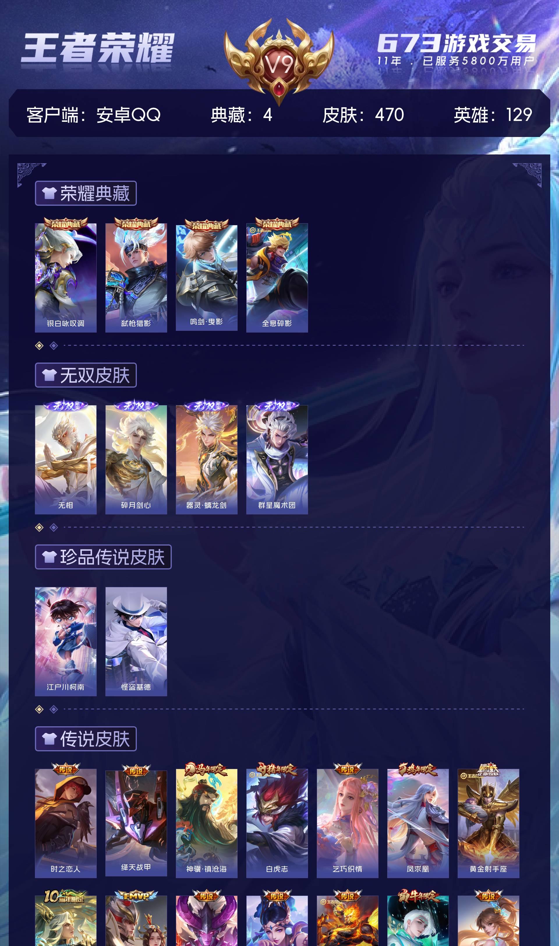 V9 皮肤470 英雄129 非凡王者 荣耀典藏4 无双皮肤4 珍品传说2 传说30