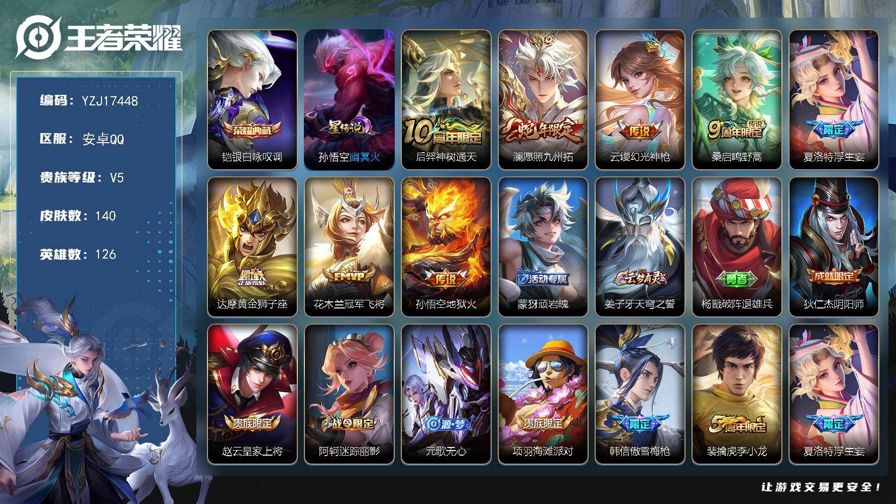 二五八二零二零__可二次安卓Q-V5精品小号140皮肤1典藏8传说1星元【典