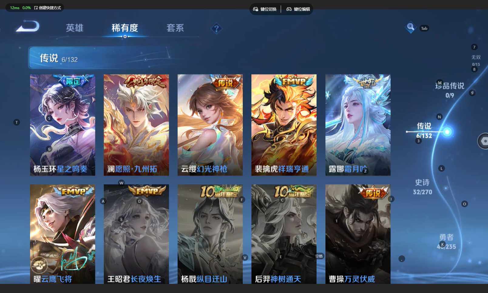 【传说皮肤】:杨玉环星之鸣奏,澜愿照九州拓,云缨幻光神枪,裴擒虎祥瑞亨通,露娜霜月吟,曜云鹰飞将