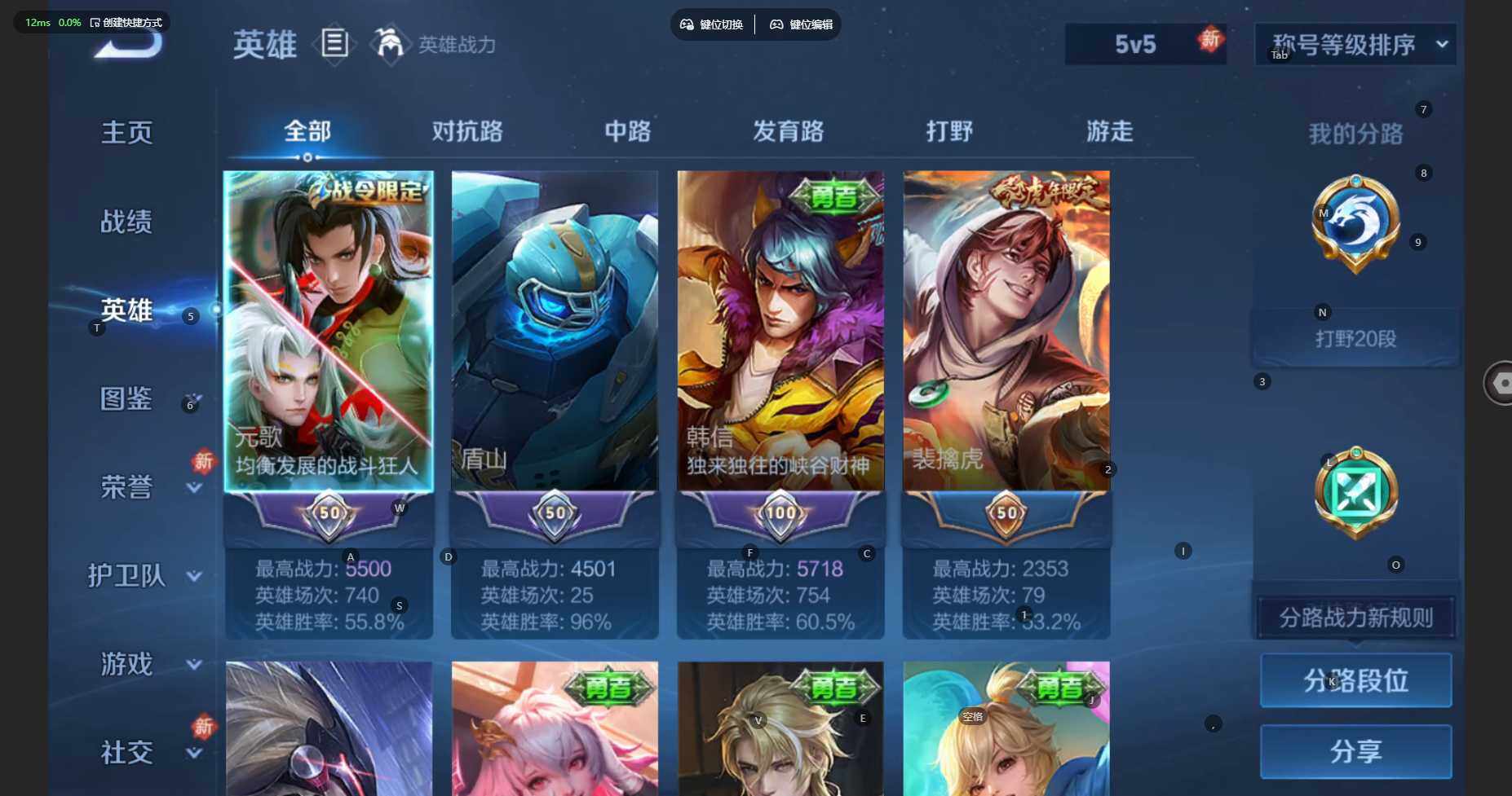 苹果WX-V8-最强王者段位-113英雄-196皮肤-1典藏皮肤-1无双-10传说-59史诗