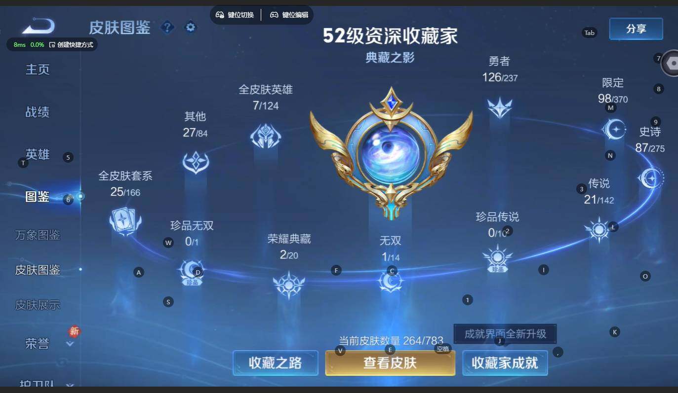 打野41段 发育路36段!苹果WX-V8-最强王者段位-128英雄-264皮肤-