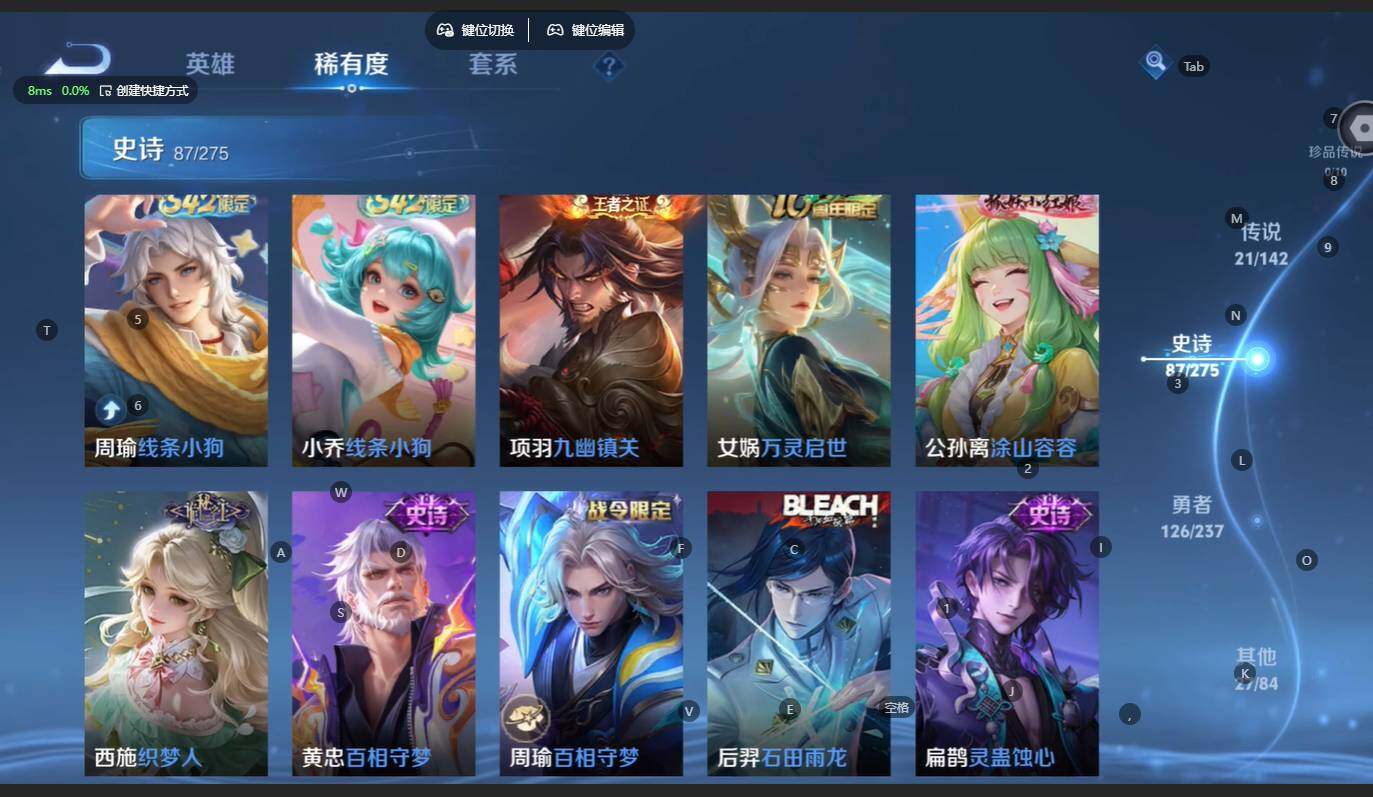 打野41段 发育路36段!苹果WX-V8-最强王者段位-128英雄-264皮肤-2典藏皮肤-1无双-21传说-86史诗