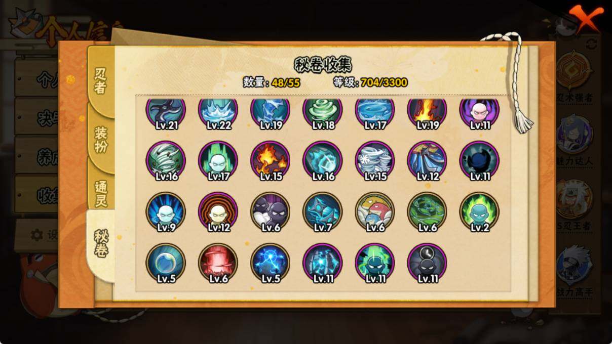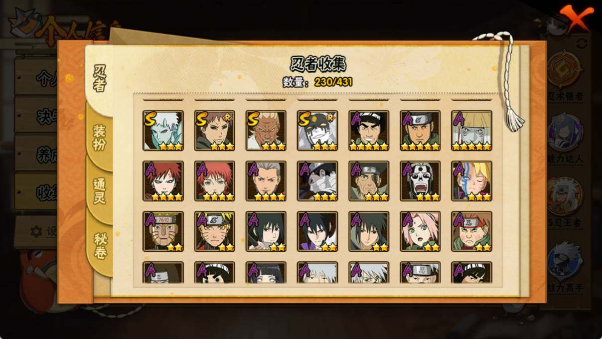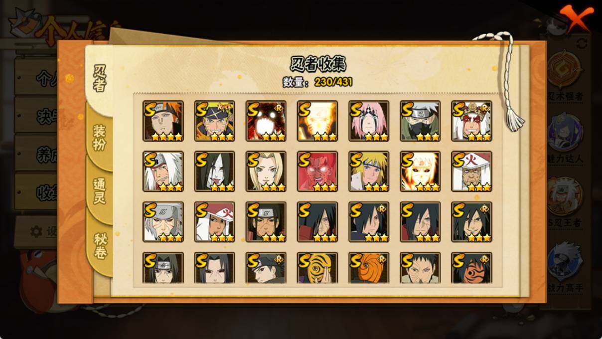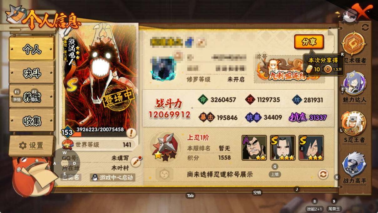 VIP等级V11/战力1206W/S忍数量32/A忍数量51