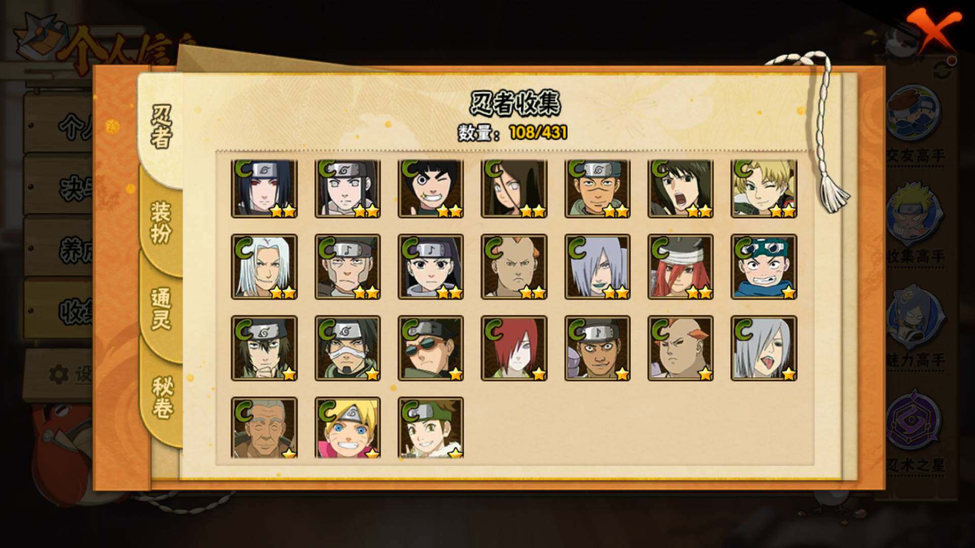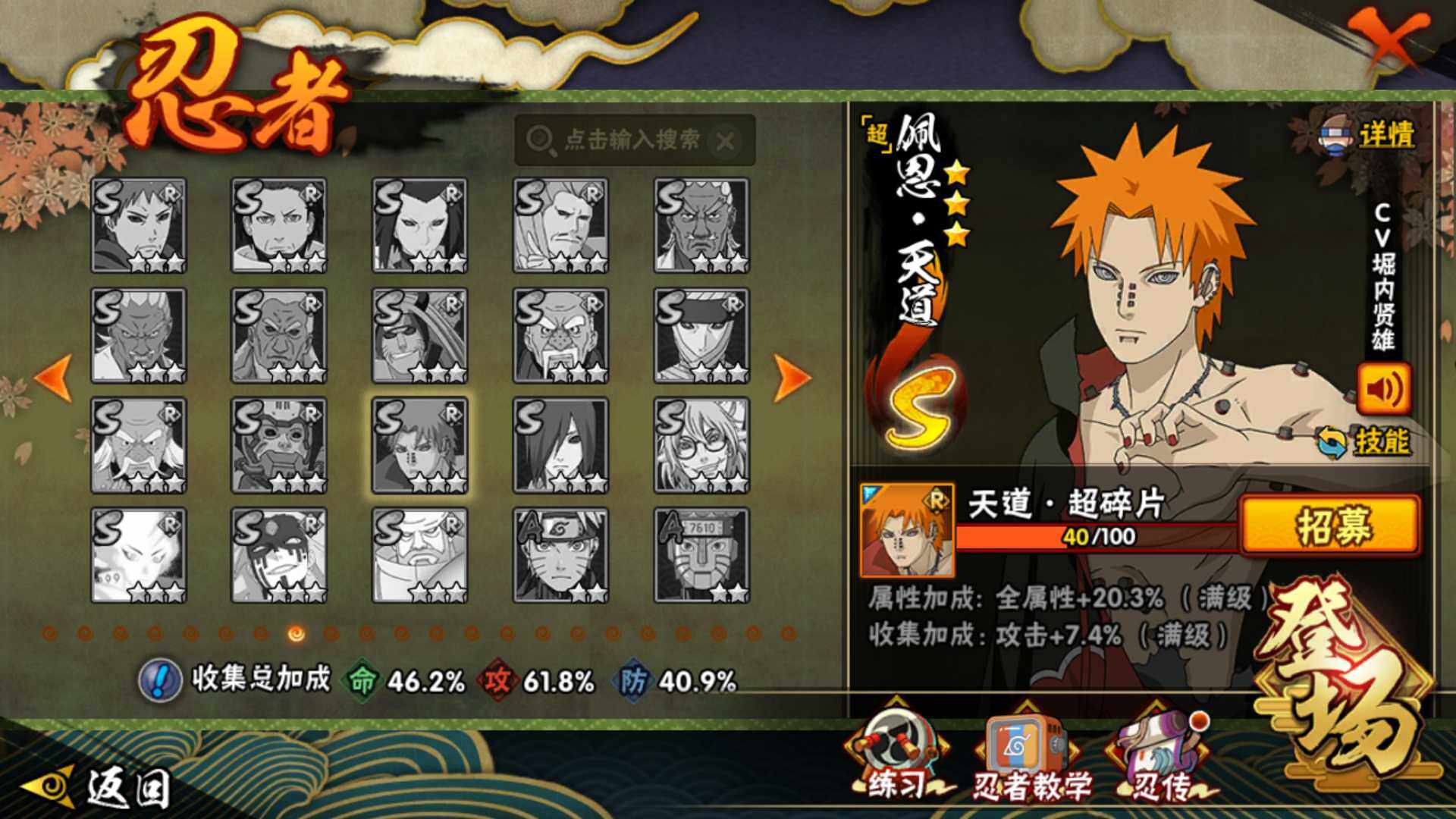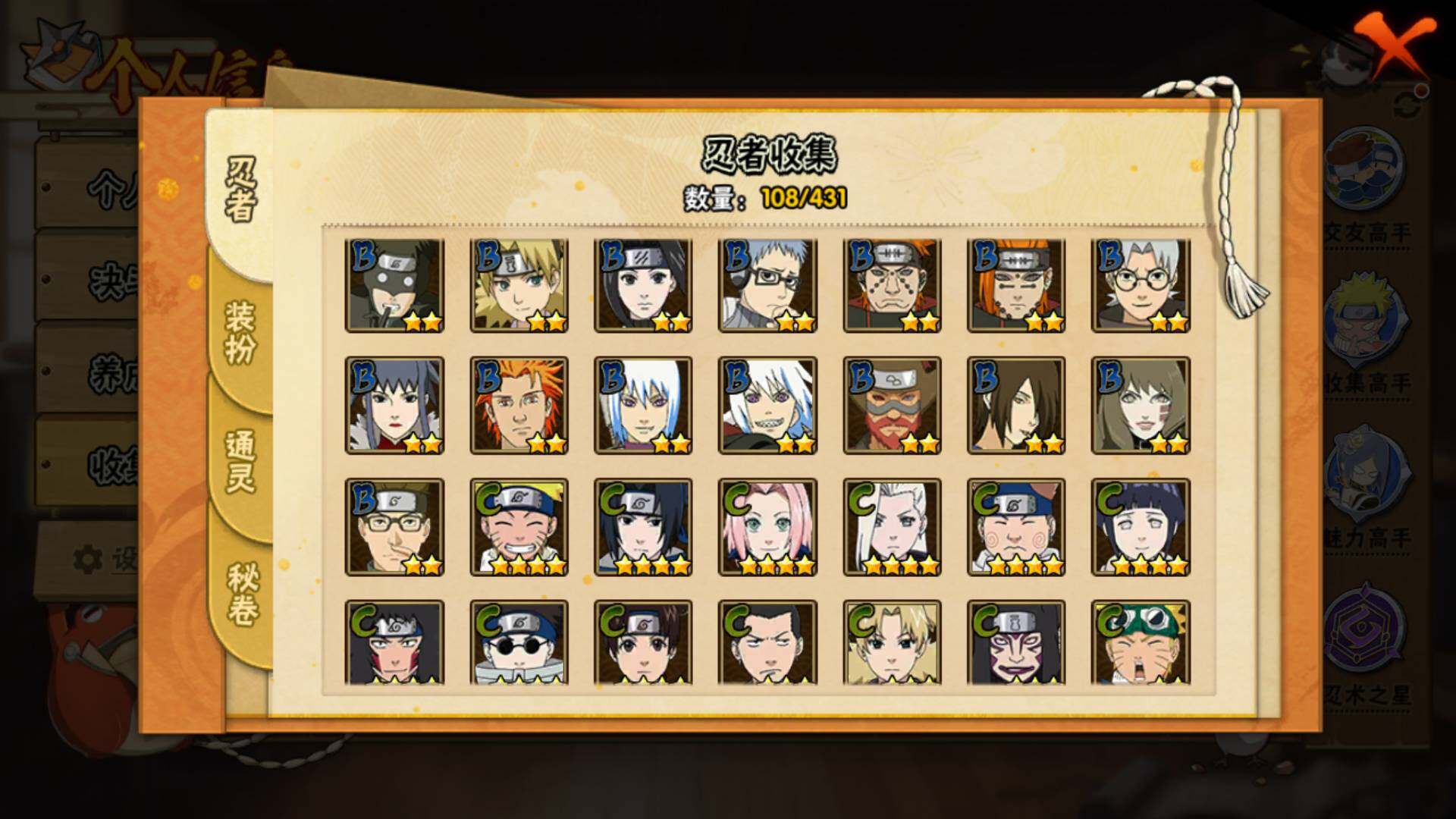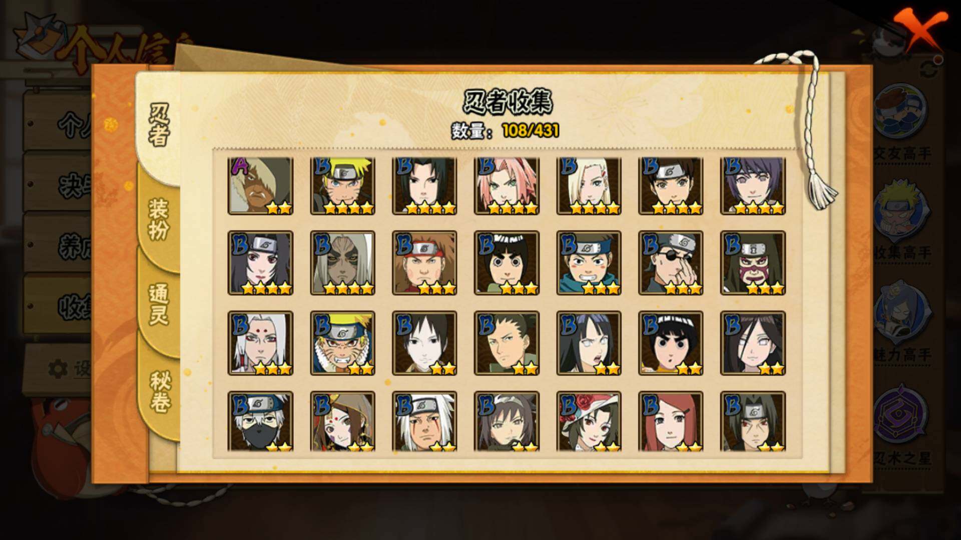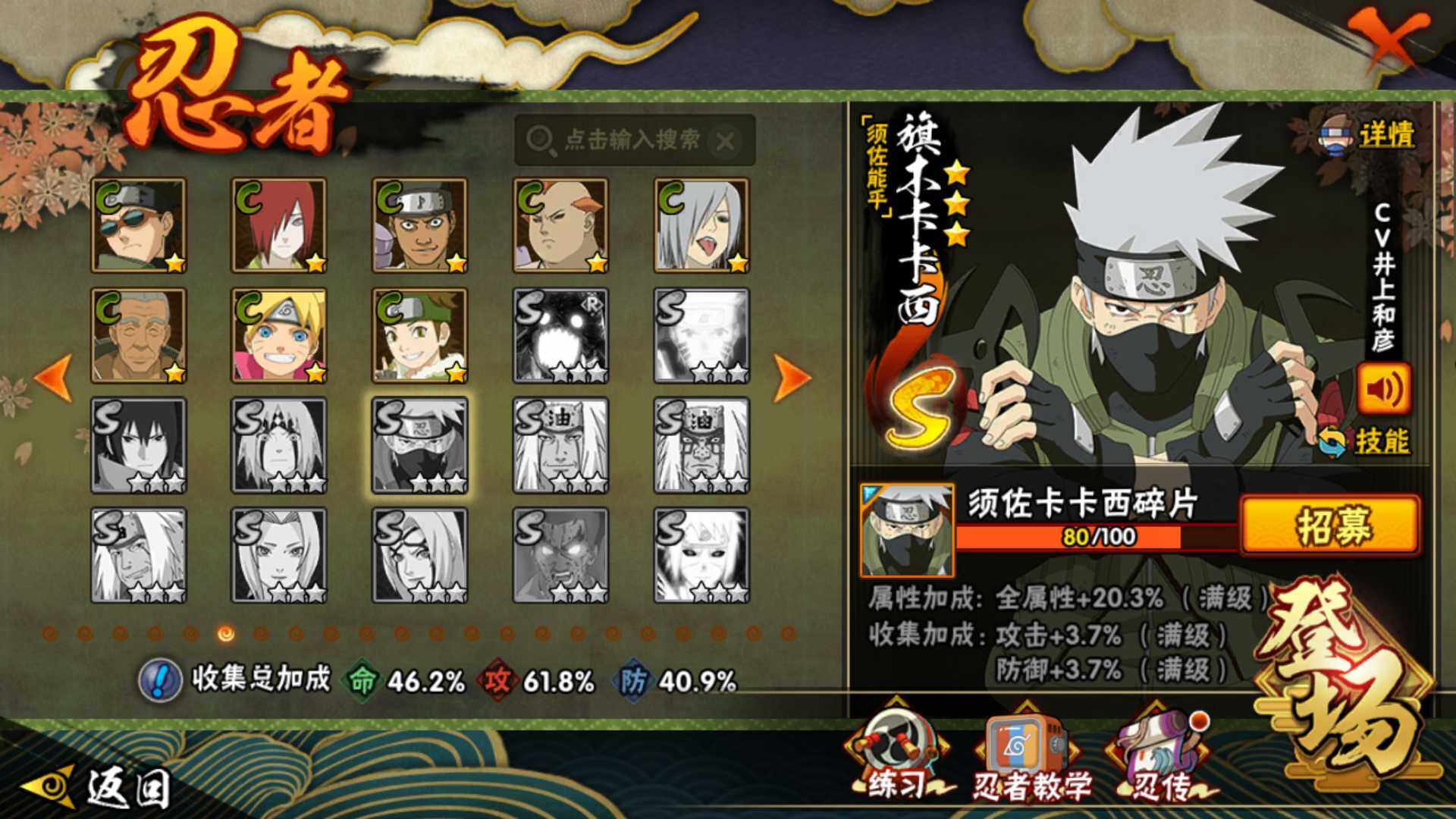 v9,447w战力,7S级忍者数-22A级忍者数,热门A,面麻,新春水门,夏日鼬,暴怒带土等。