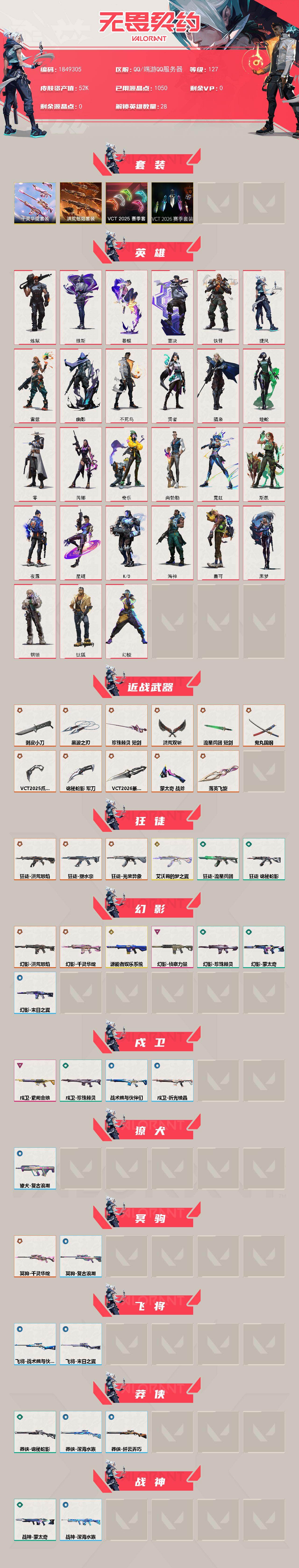 【套装】:W16544 可立即换绑无需挂单养号 VCT 2026 赛季套装,VCT 2025 赛季套装,千灵华绽套装,洪荒怒焰套装