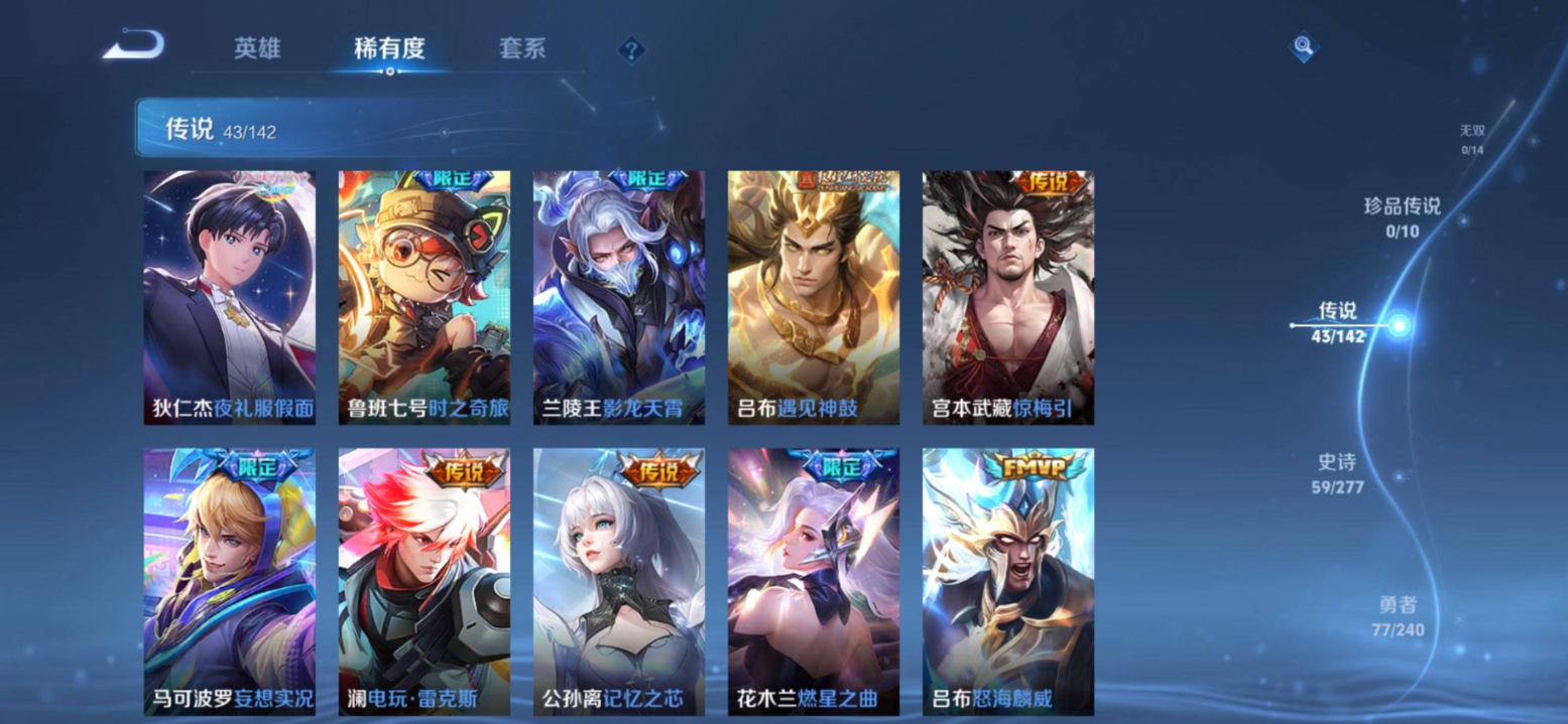 129英雄240皮肤-苹果QQ 可二次/v9打野男号/差1千多到v10/30多个皮肤按键/至尊星耀/启明星使 虞姬,逐花归海 澜,电玩·雷克斯 澜,飞鸢探春 李元芳,无双飞将 马超,零号·赤焰 孙悟空,地狱火 孙悟空,云鹰飞将 曜,补天 女娲,夜礼服假面 狄仁杰,深海之息 马可波罗,游龙清影 西施,诗剑行 李白,燃星之曲 花木兰,仲夏夜之梦 貂蝉,惊梅引 宫本武藏,影龙天霄 兰陵王,记忆之芯