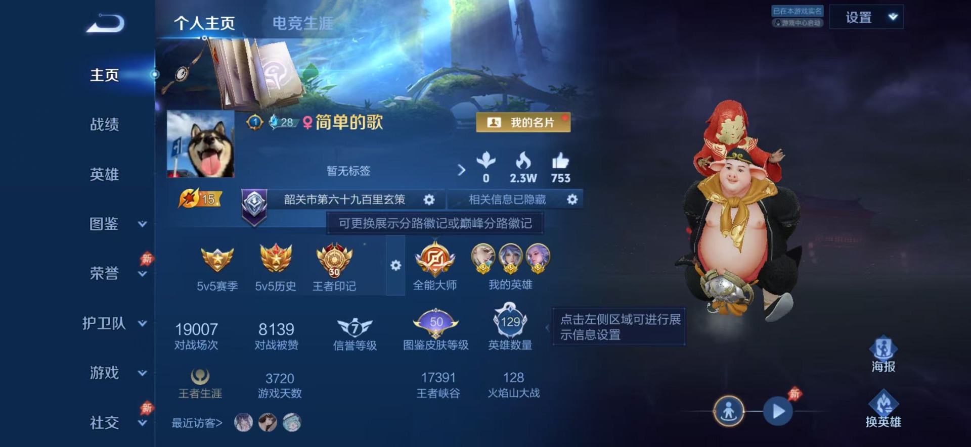 V8 2典藏 23传说 129英雄 339皮肤 可二次 可修改实名 男号