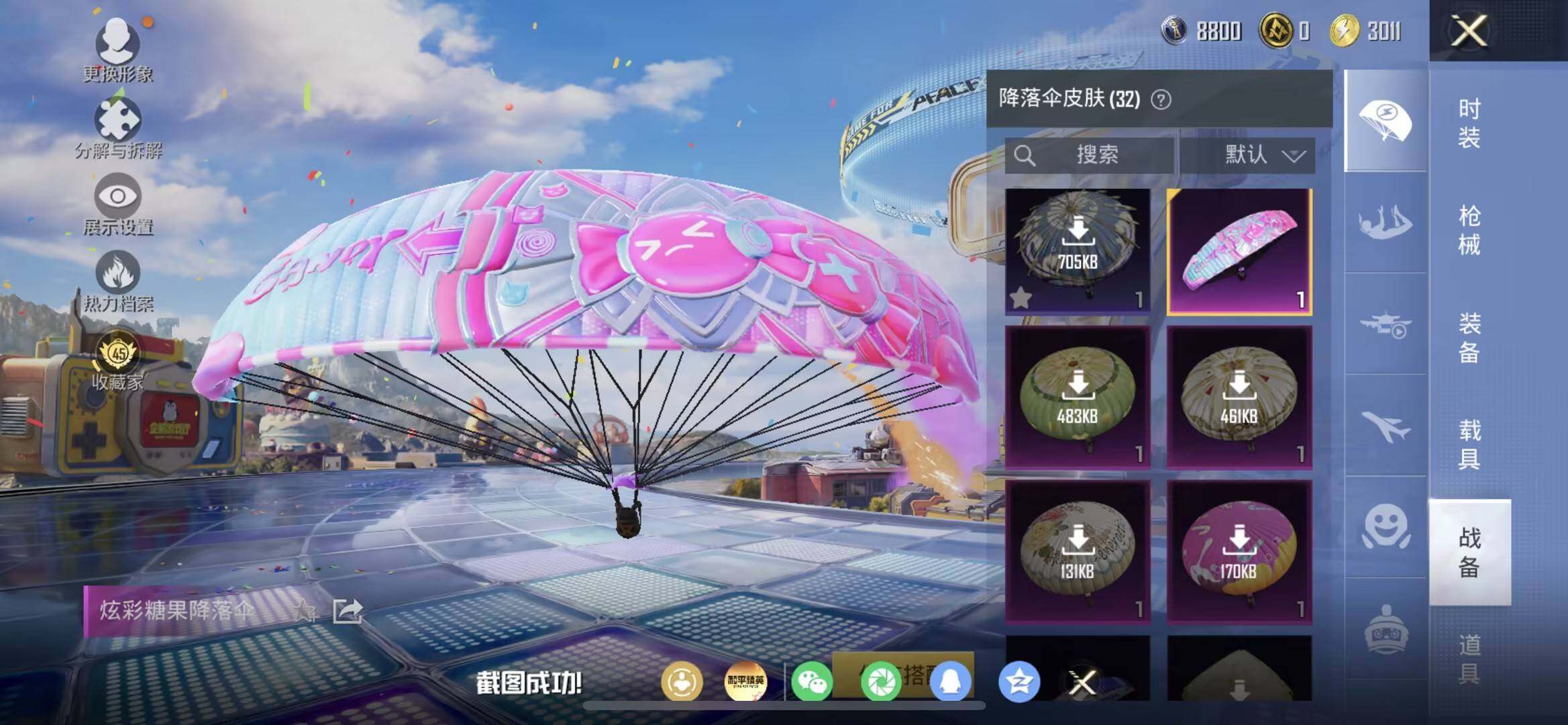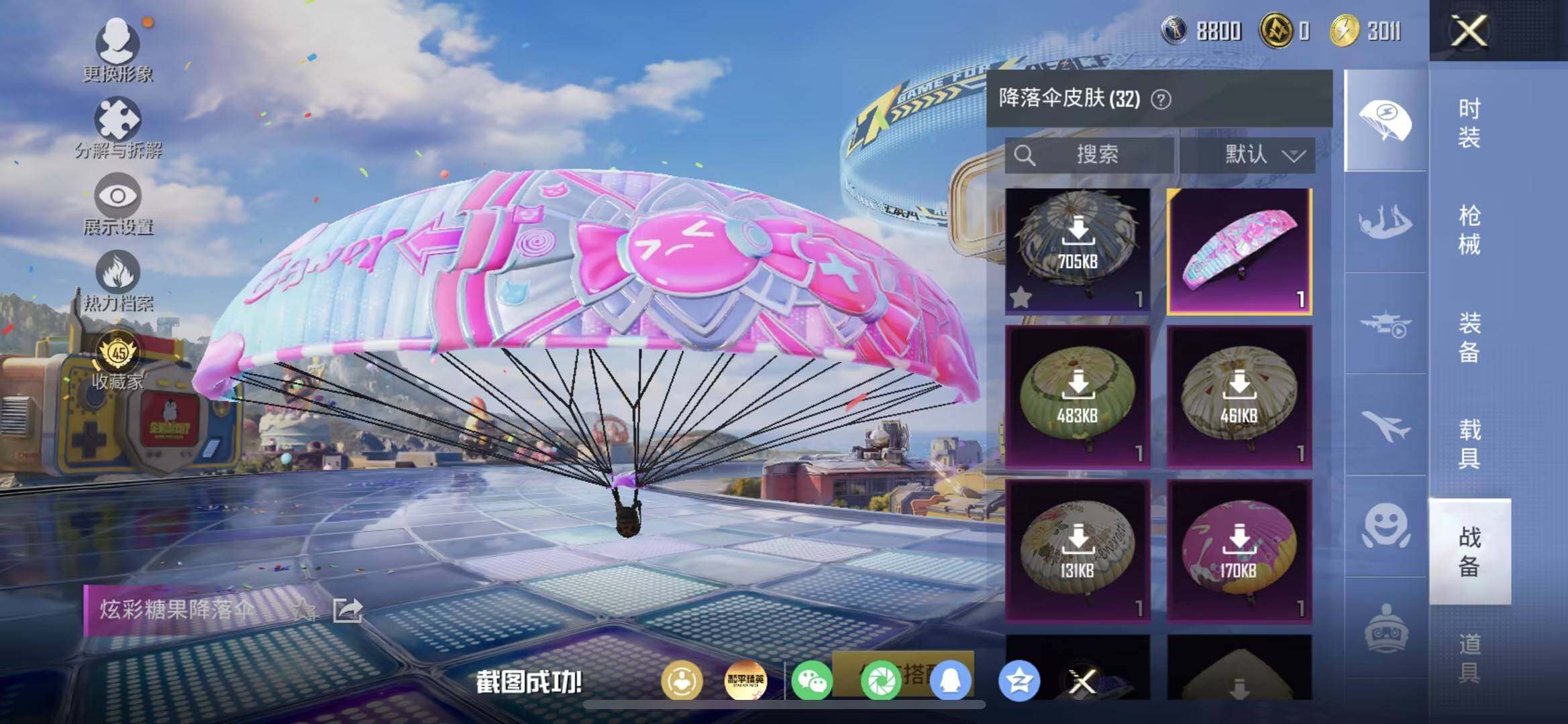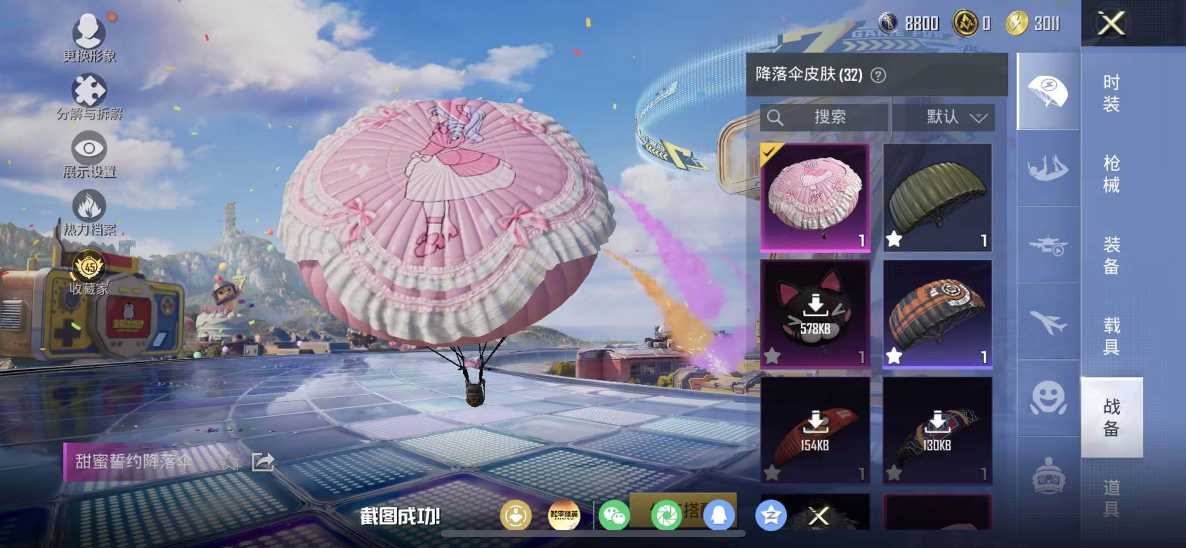苹果手Q-2粉装-3特效枪-1载具-2粉色飞行器-38250热力值-2王牌印记