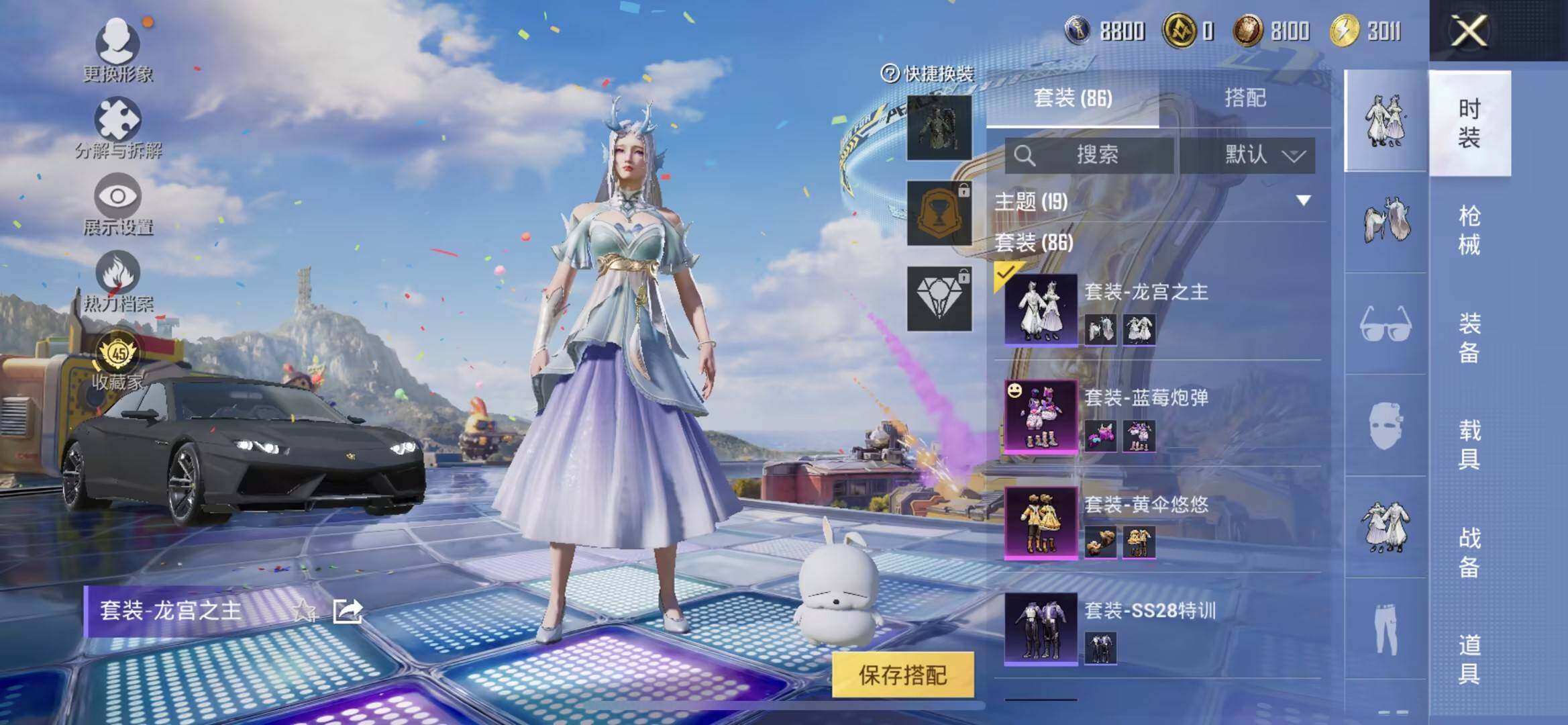 苹果手Q-2粉装-3特效枪-1载具-2粉色飞行器-38250热力值-2王牌印记-86套装-108枪皮