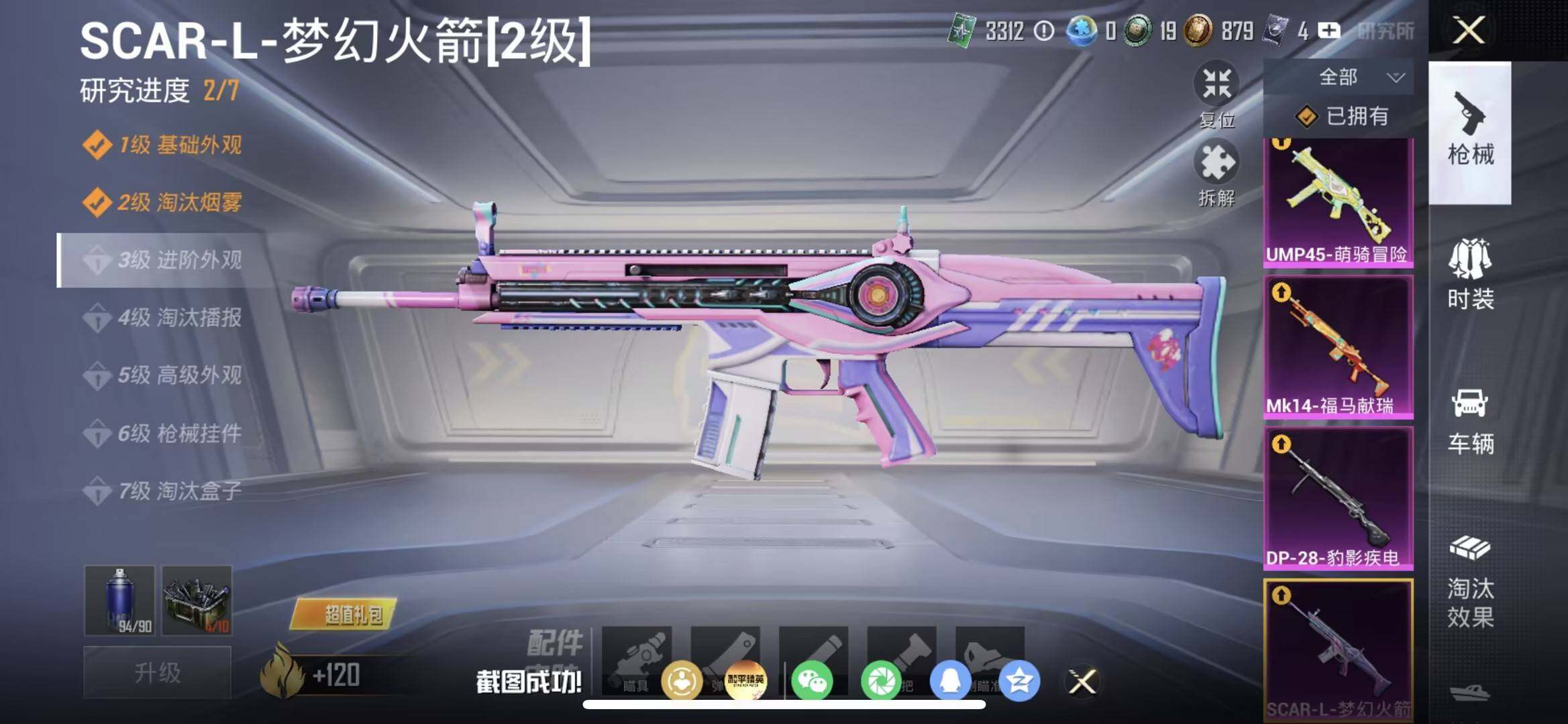 【粉色枪皮等级】:SCAR-L-梦幻火箭(二级),UMP45-