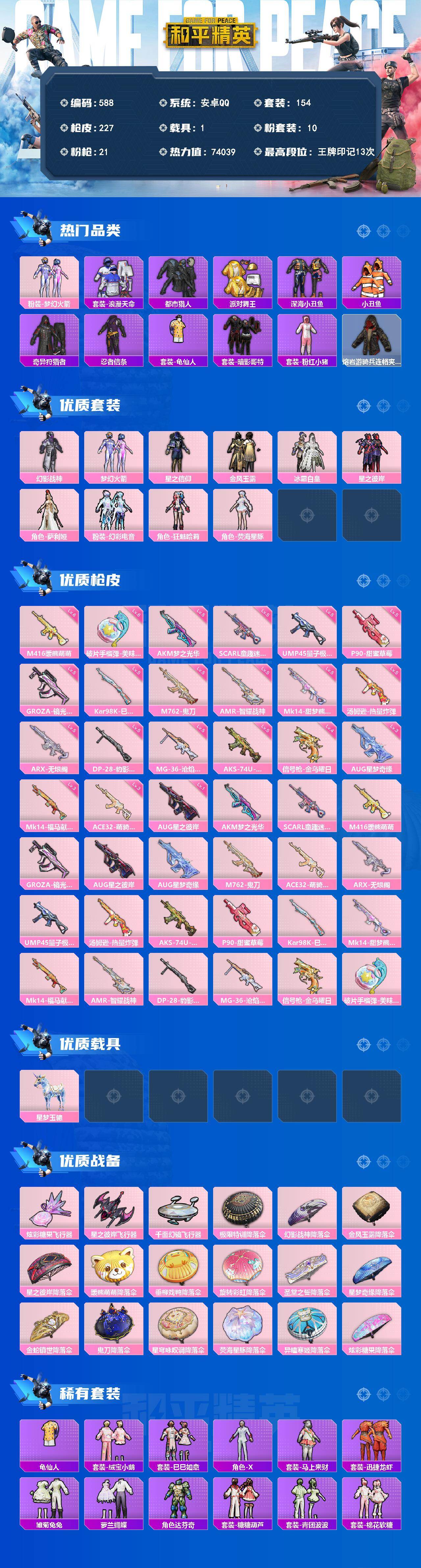 安卓手Q-10粉装-21特效枪-1载具-4粉色飞行器-74039热力值-13王牌印记-154套装-227枪皮