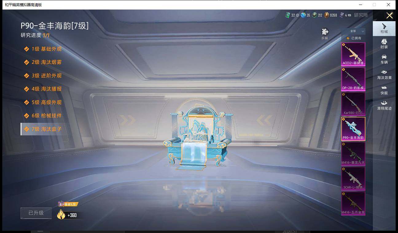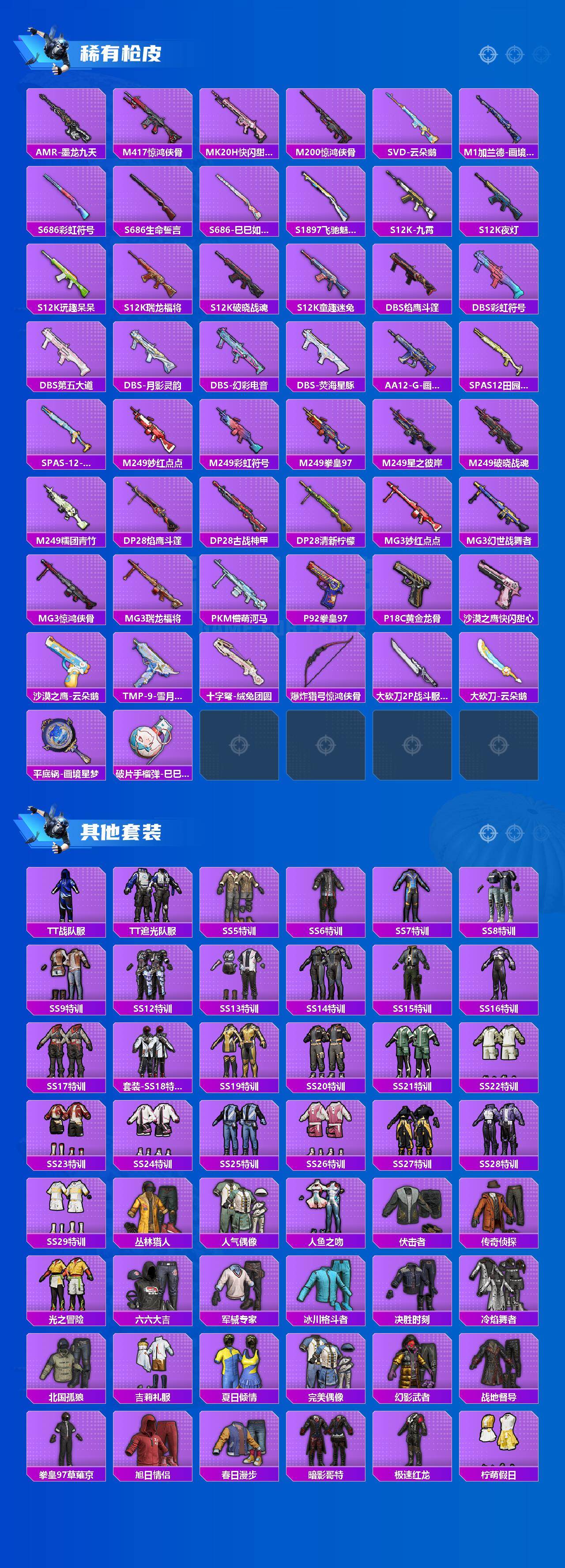 238套装/枪械7/装备396/载具2/战备233/王牌印记