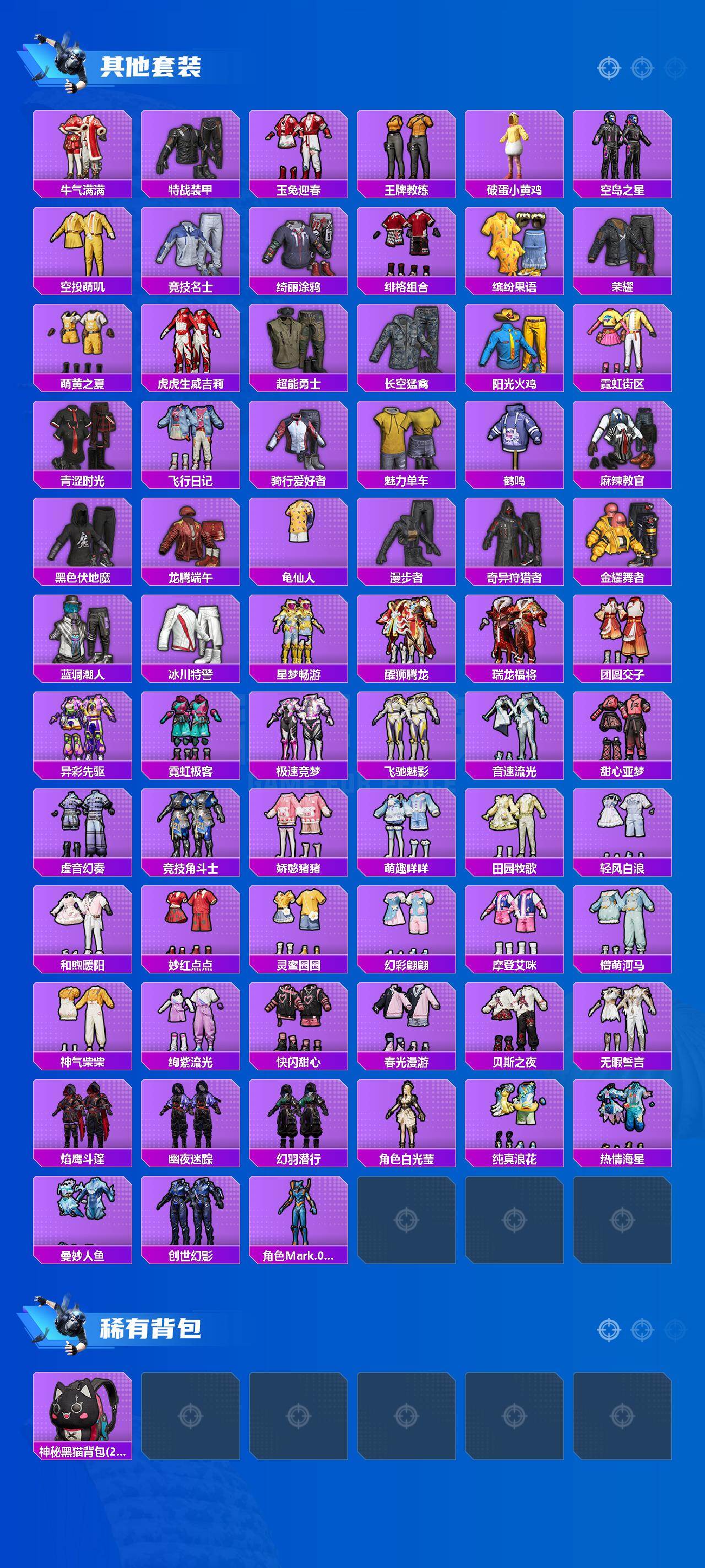 【粉色套装】:套装-创世·救赎,角色-千金淑猫,粉装-星穹咏叹调,角色-冷漠罗丽,角色-花中眠,角色-虹云熊熊