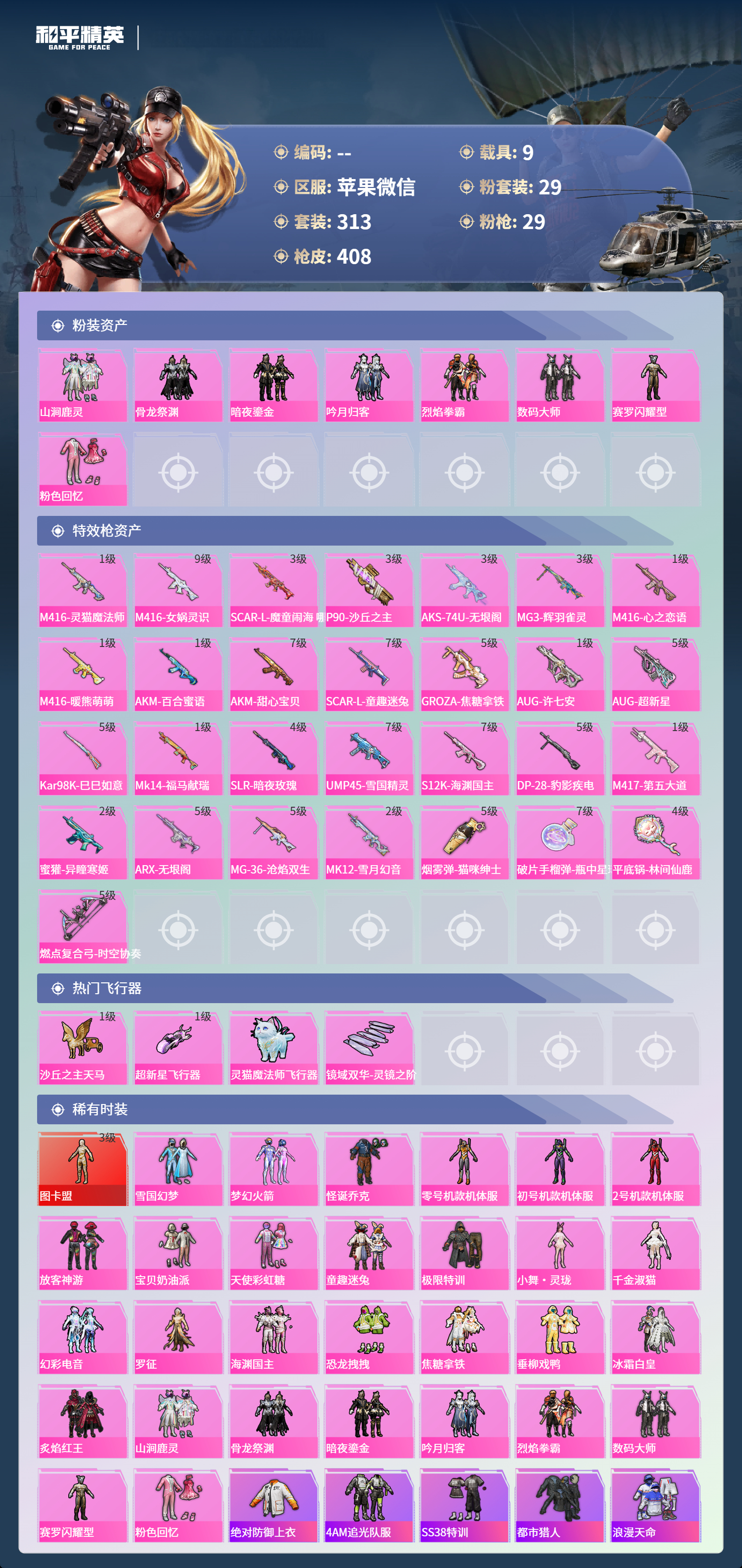 苹果微信-27王牌印记-1红装-29粉装-29特效枪-9载具-热力