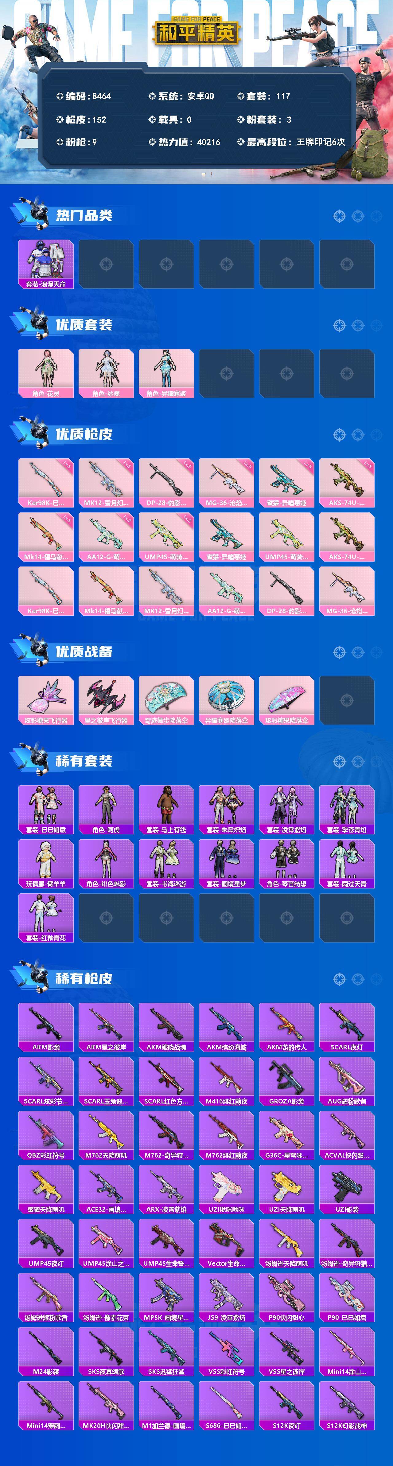 【8464】3粉装-9特效枪-0载具-2粉色飞行器-40216热力值-6王牌印记-117套装-152枪皮