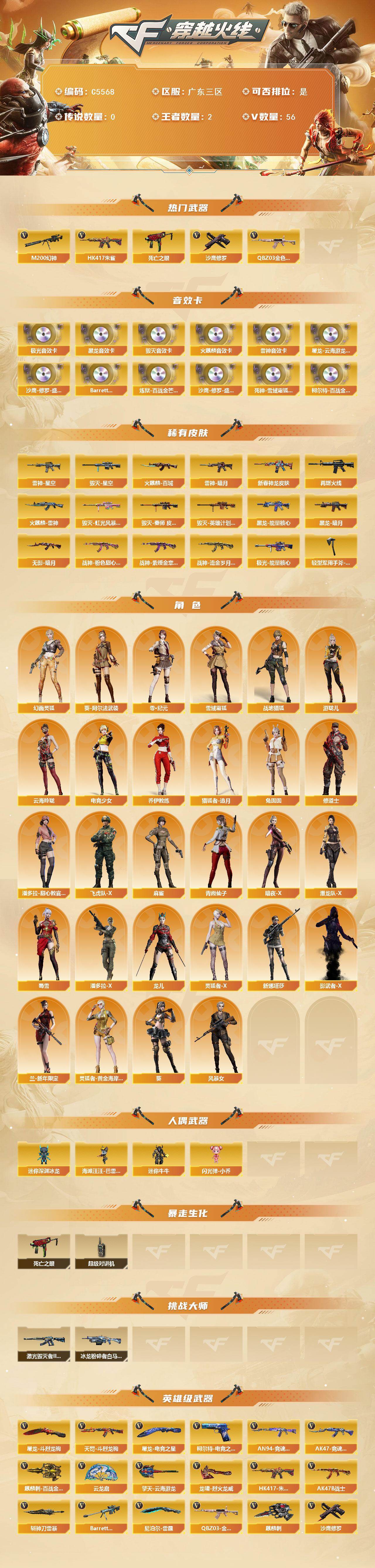 【C5568】广东三区-58V-2王者武器数-0炫金武器数
