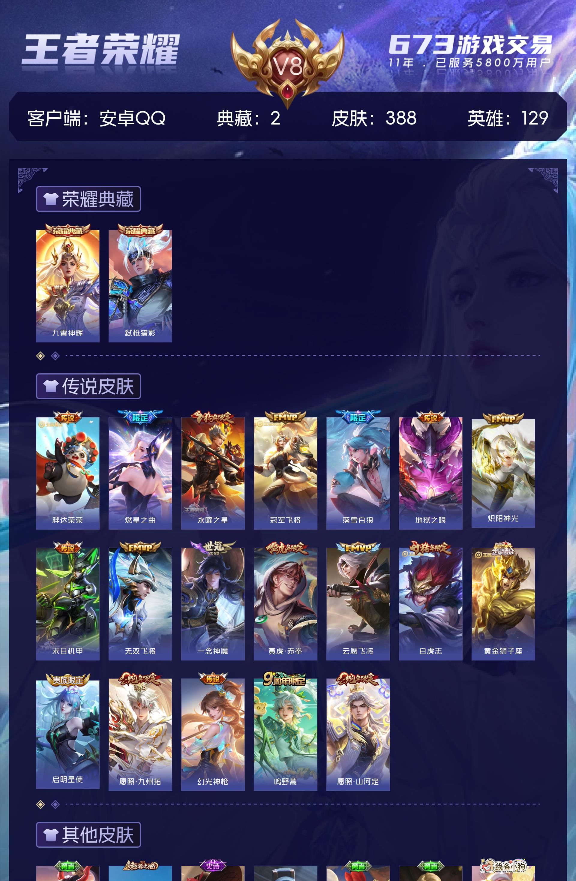 V8 皮肤388 英雄129 绝世王者 荣耀典藏2 传说20